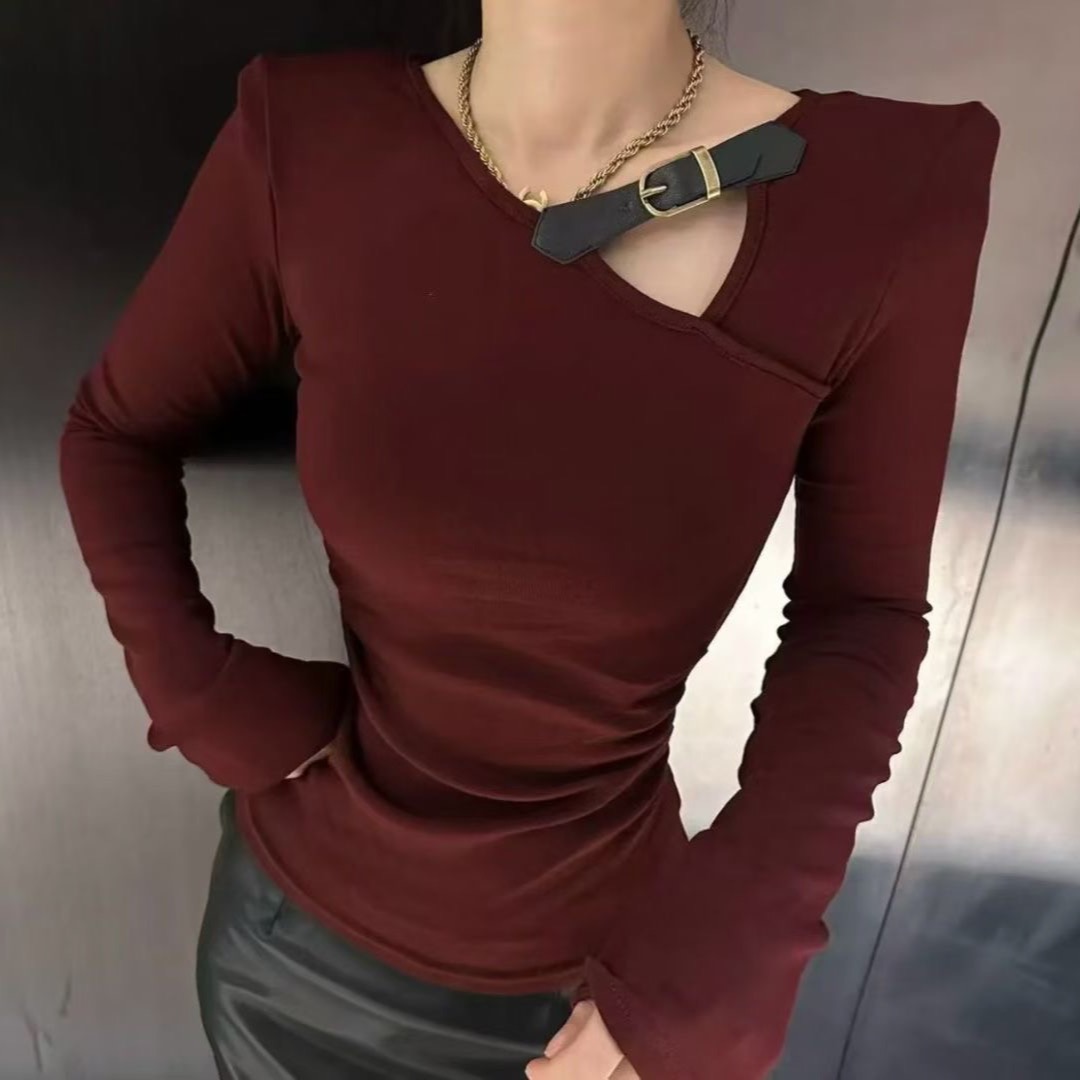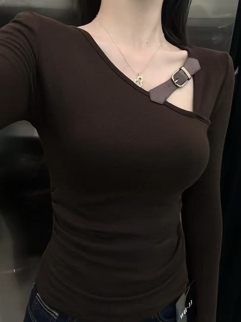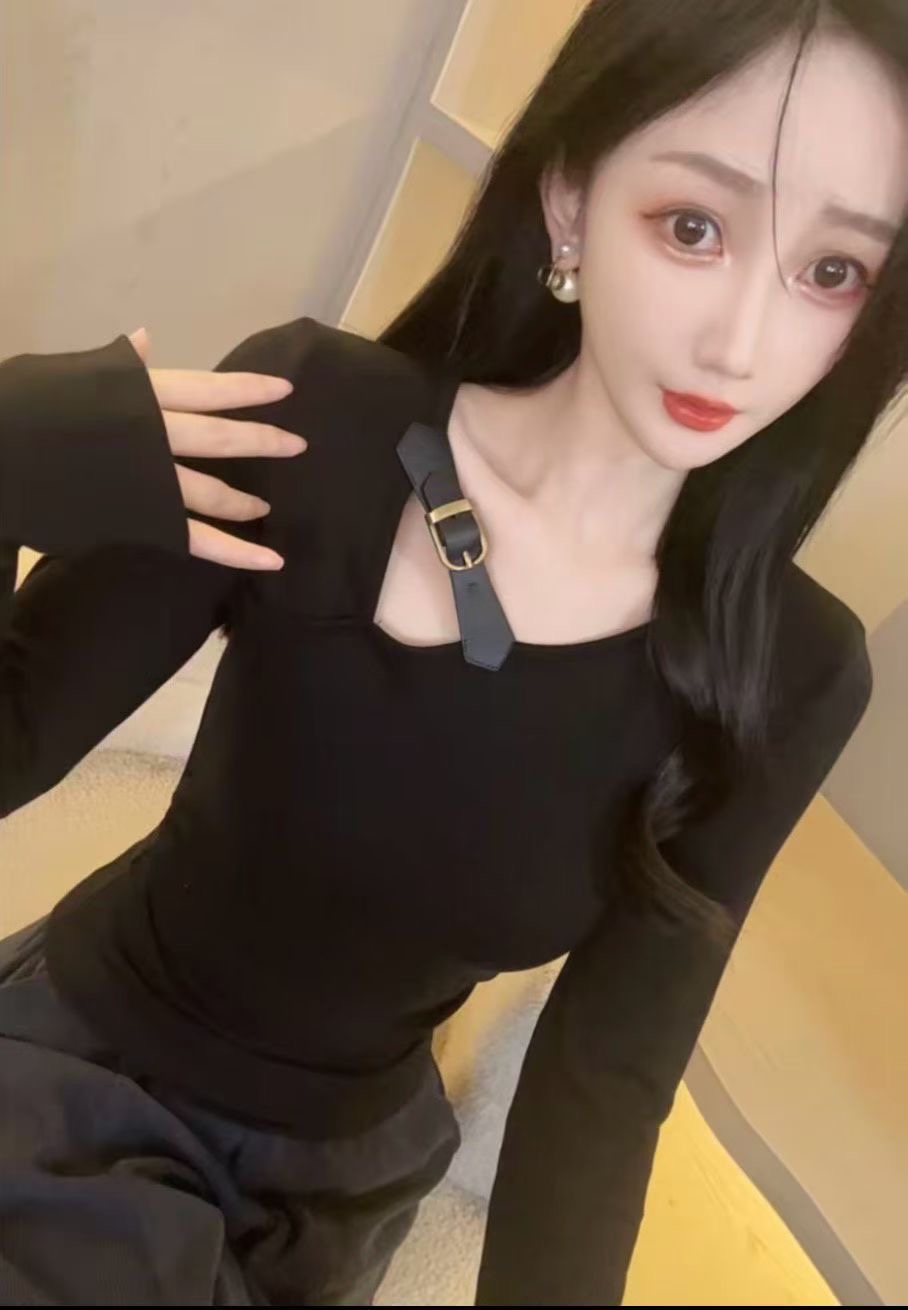 FA45687# 秋季新款时尚百搭纯欲辣妹显瘦长袖T恤女上衣女 服裝批發女裝批發服飾貨源