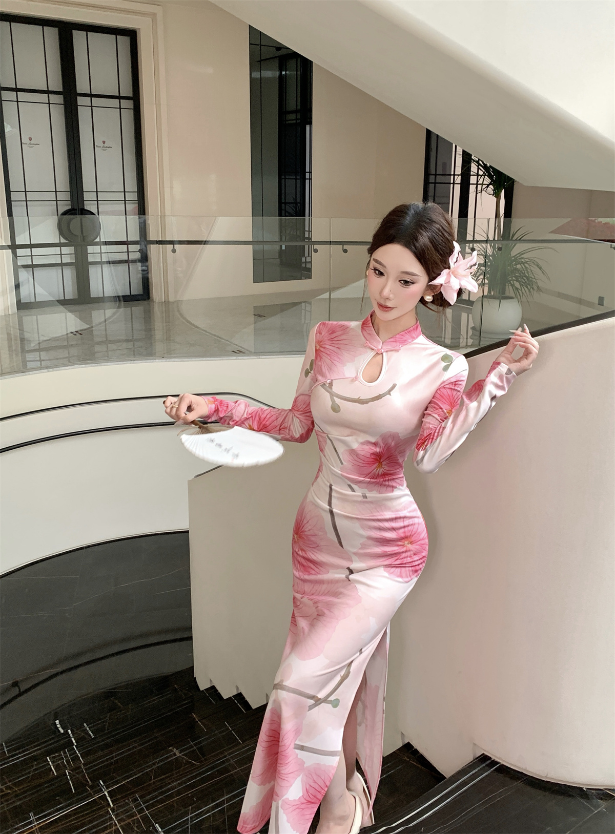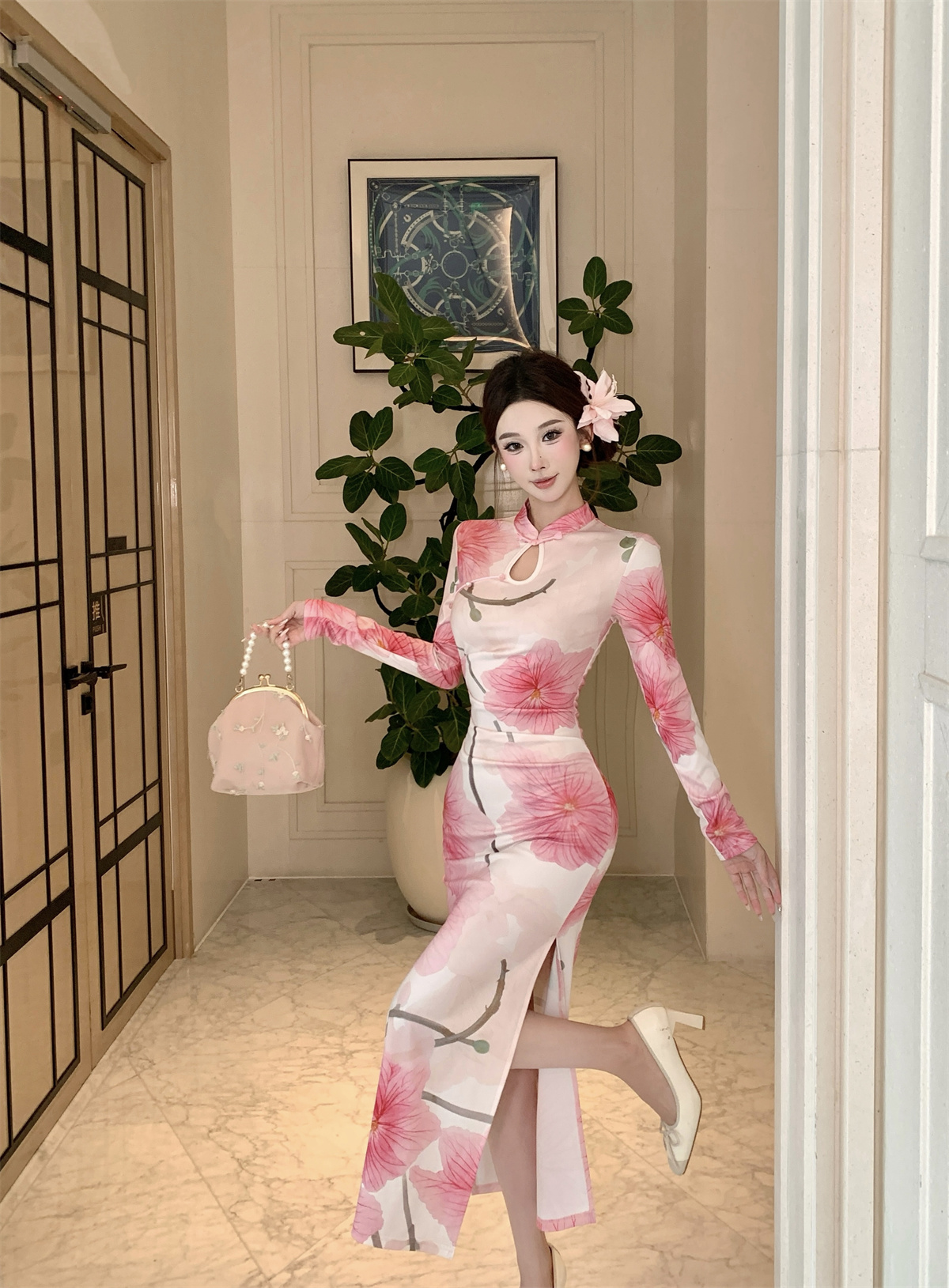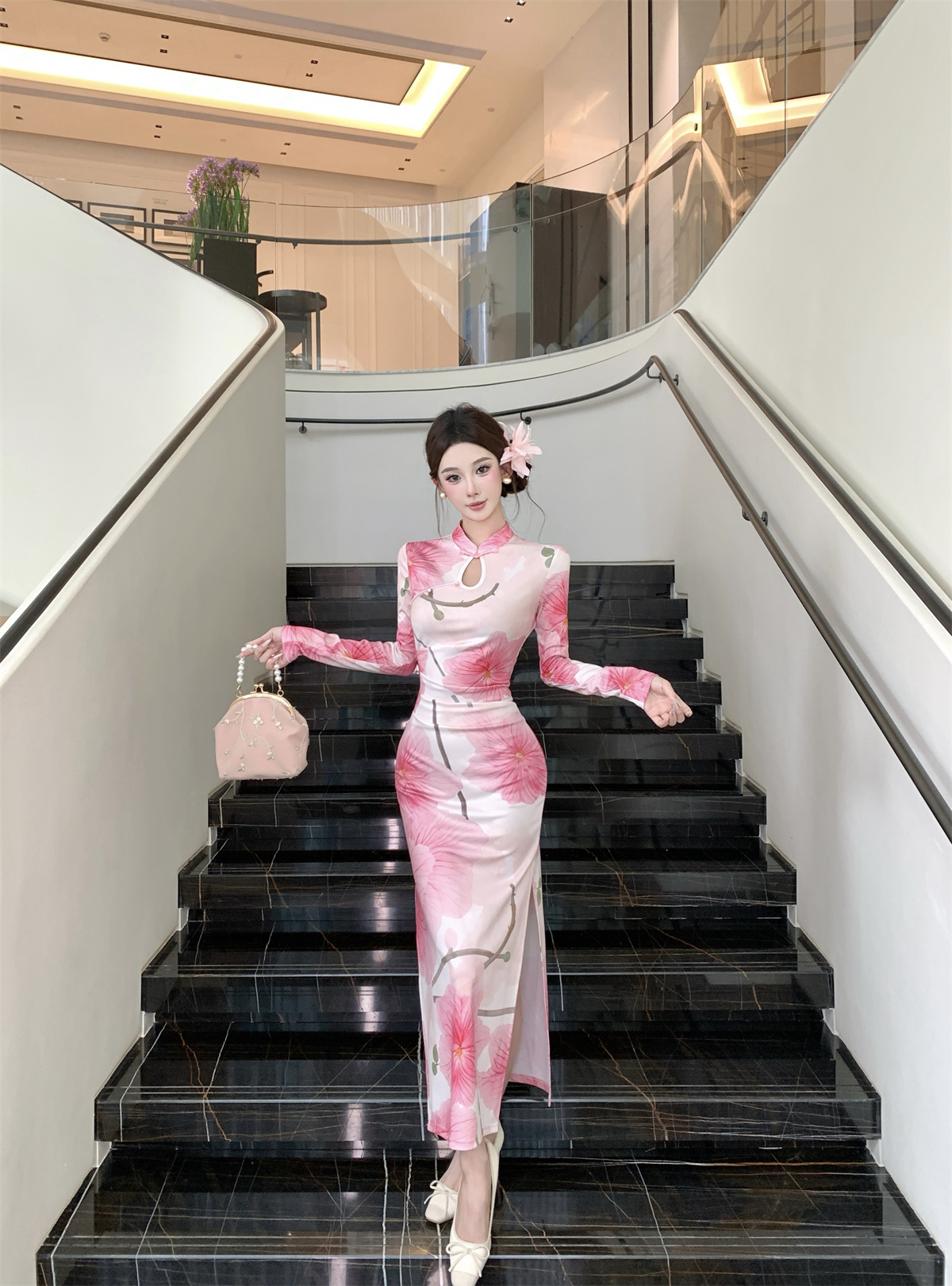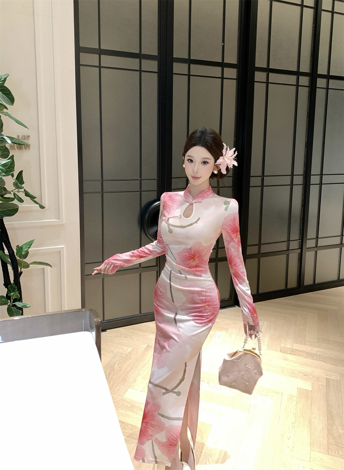 FA46728# 时尚印花钉珠旗袍连衣裙 服裝批發女裝批發服飾貨源