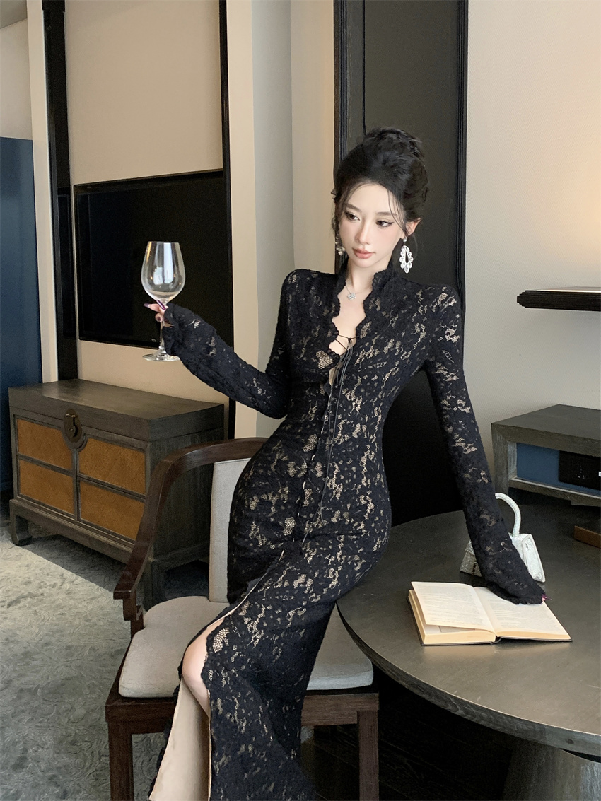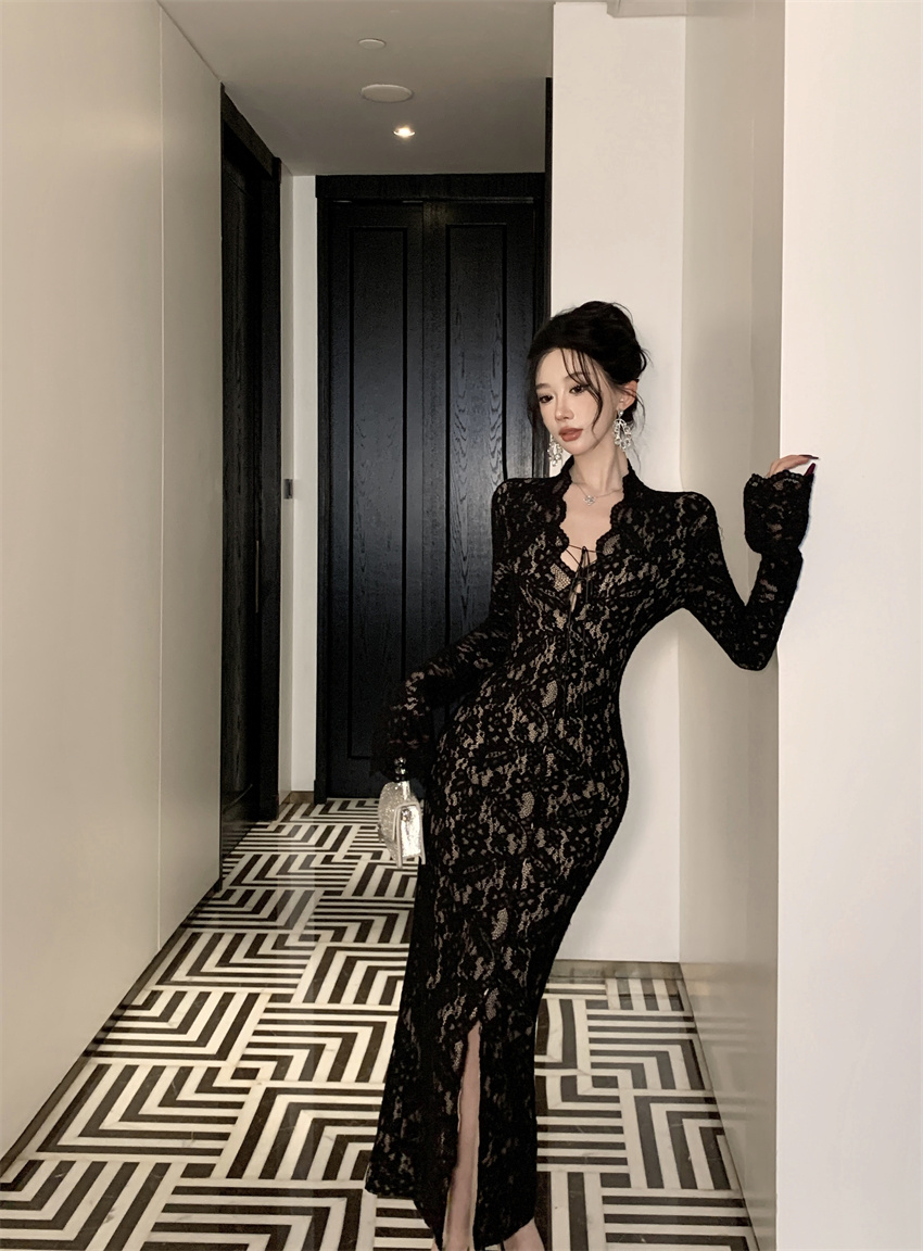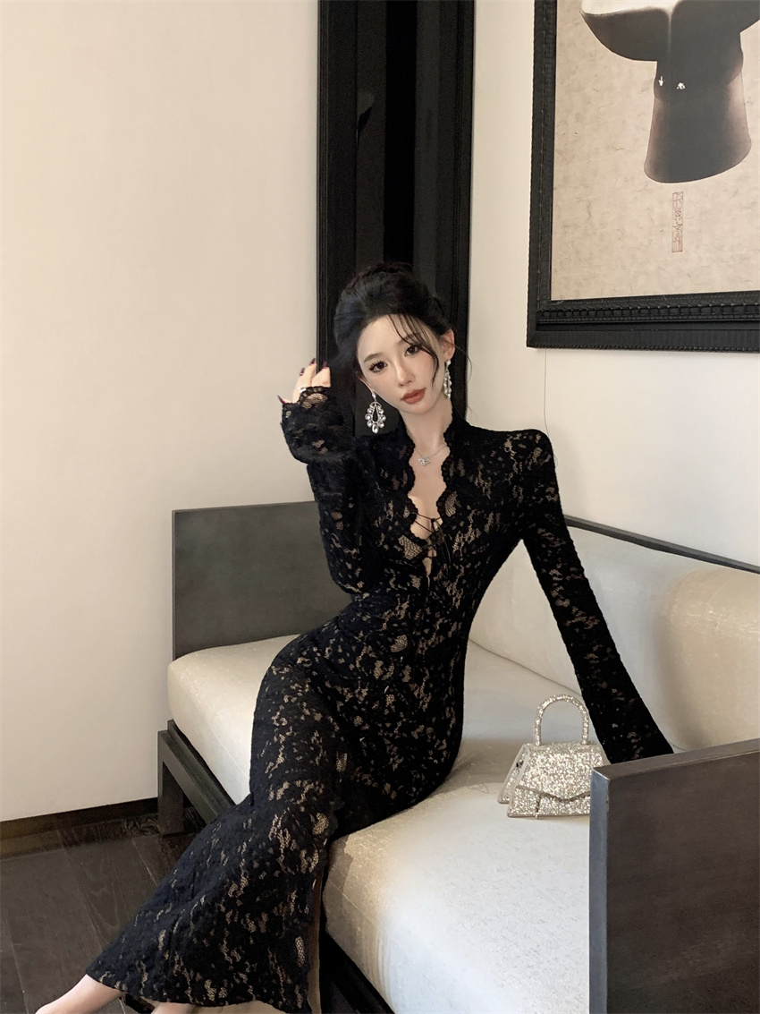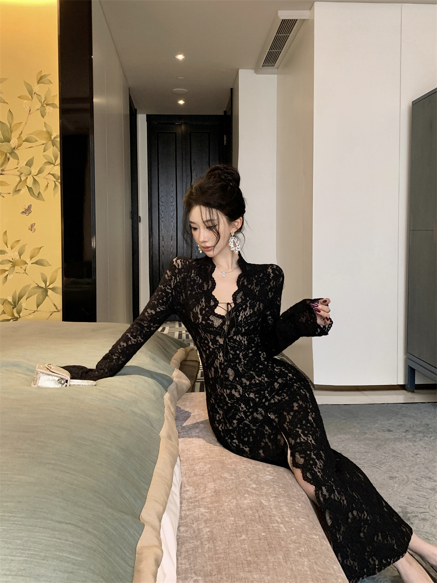 FA46730# 时尚性感气质蕾丝收腰显瘦连衣裙 服裝批發女裝批發服飾貨源