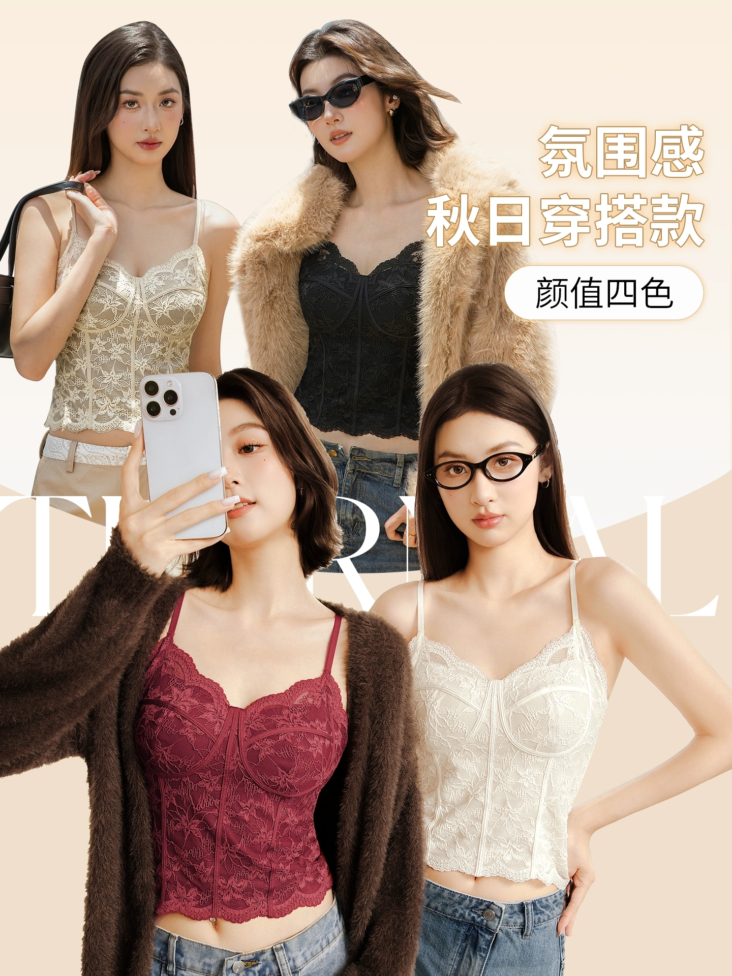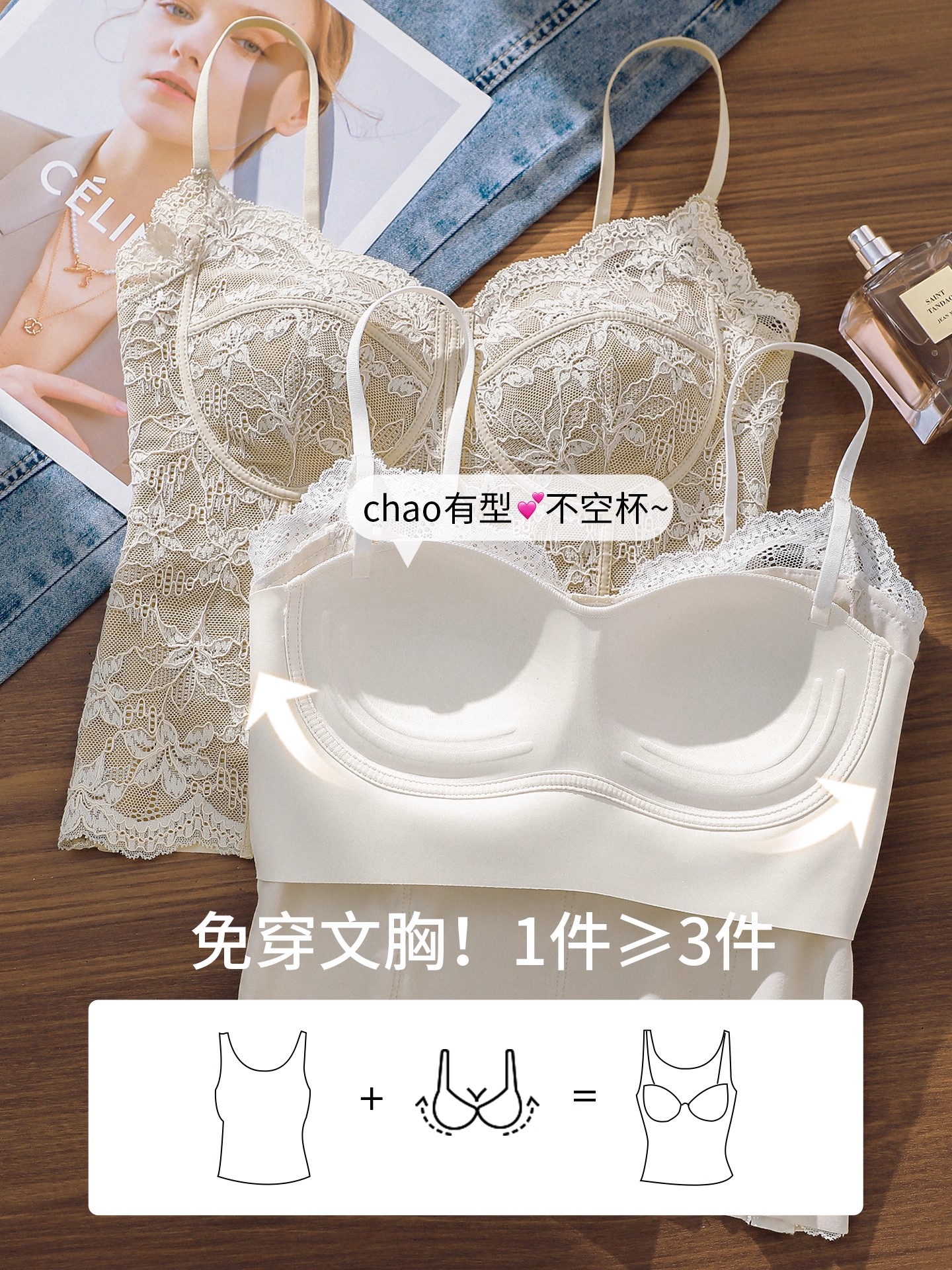 FA46761# 纯欲风蕾丝磨毛保暖带胸垫吊带背心女可外穿修身显瘦内搭打底上衣 服裝批發女裝批發服飾貨源