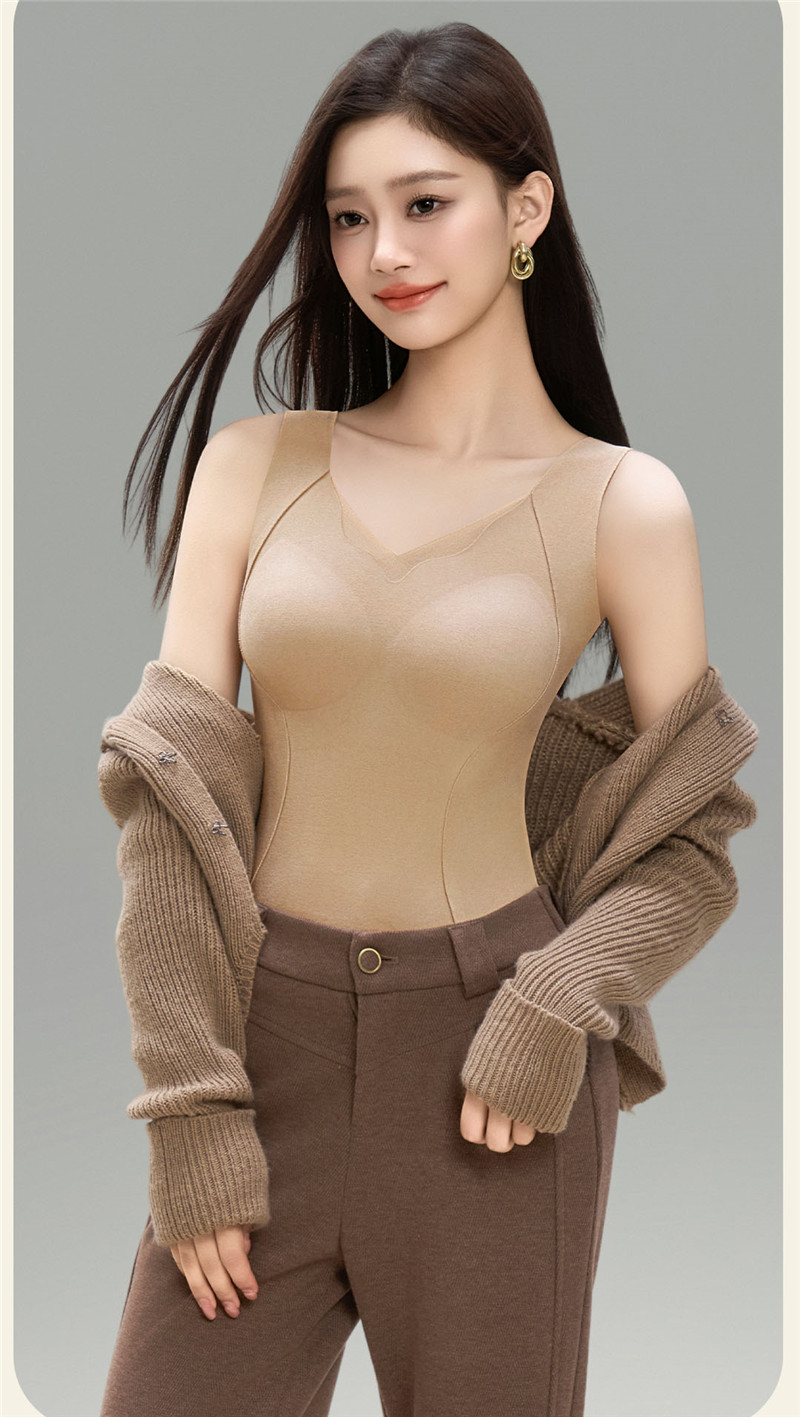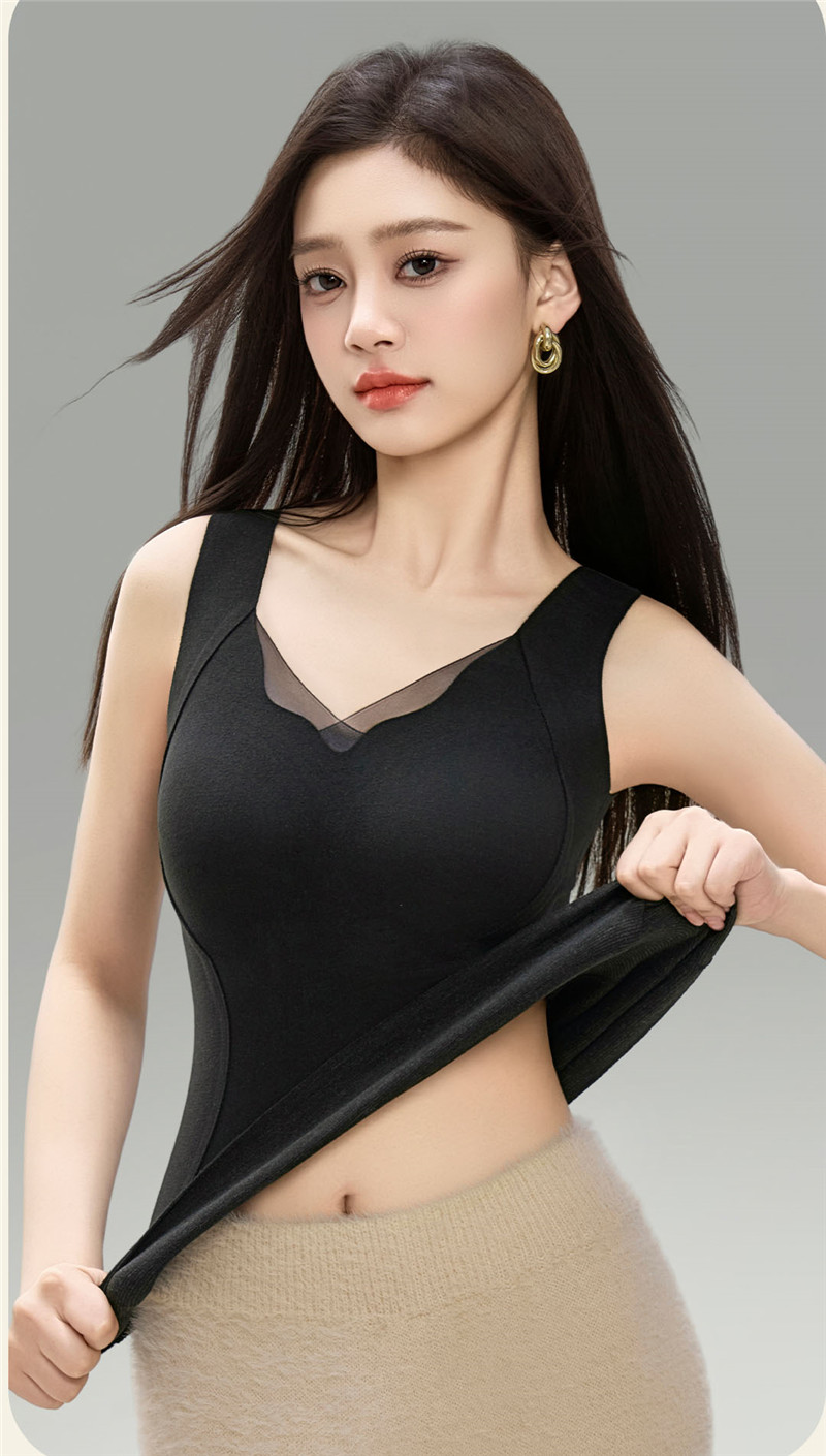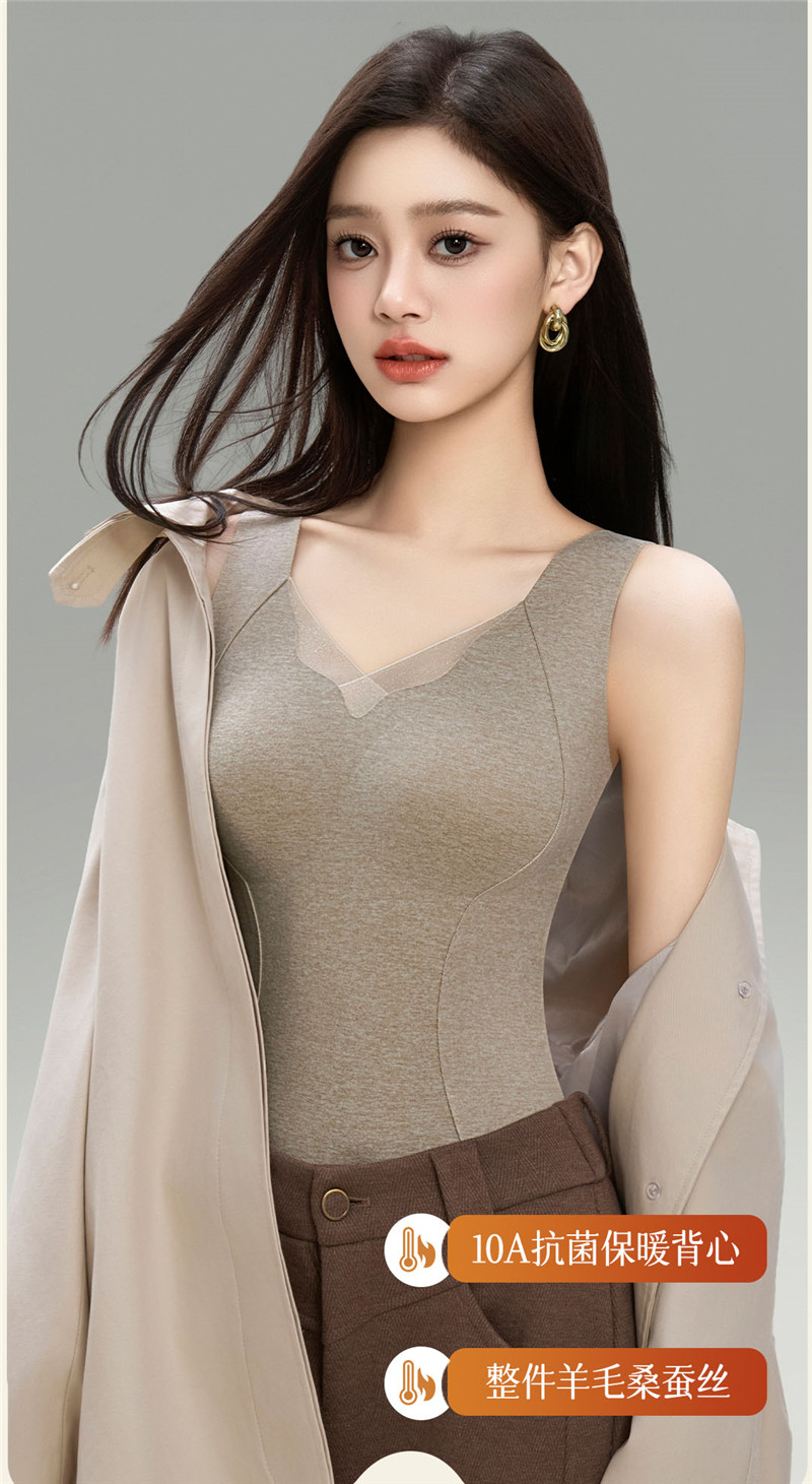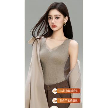 FA46764# 保暖背心女新款春秋带胸垫上衣加厚羊绒蚕丝美拉德打底衫 服裝批發女裝批發服飾貨源