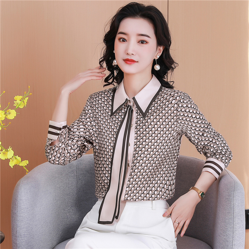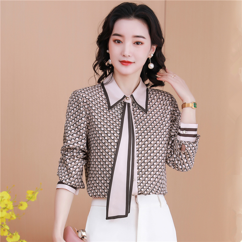 FA46859# 重磅真丝长袖衬衫女高级感秋装新款领带垂感桑蚕丝高端上衣 服裝批發女裝批發服飾貨源