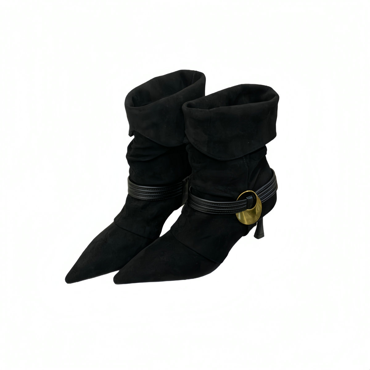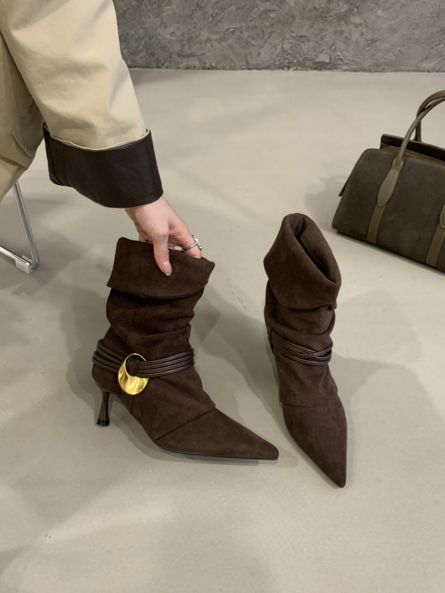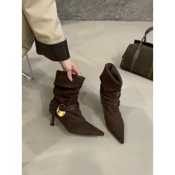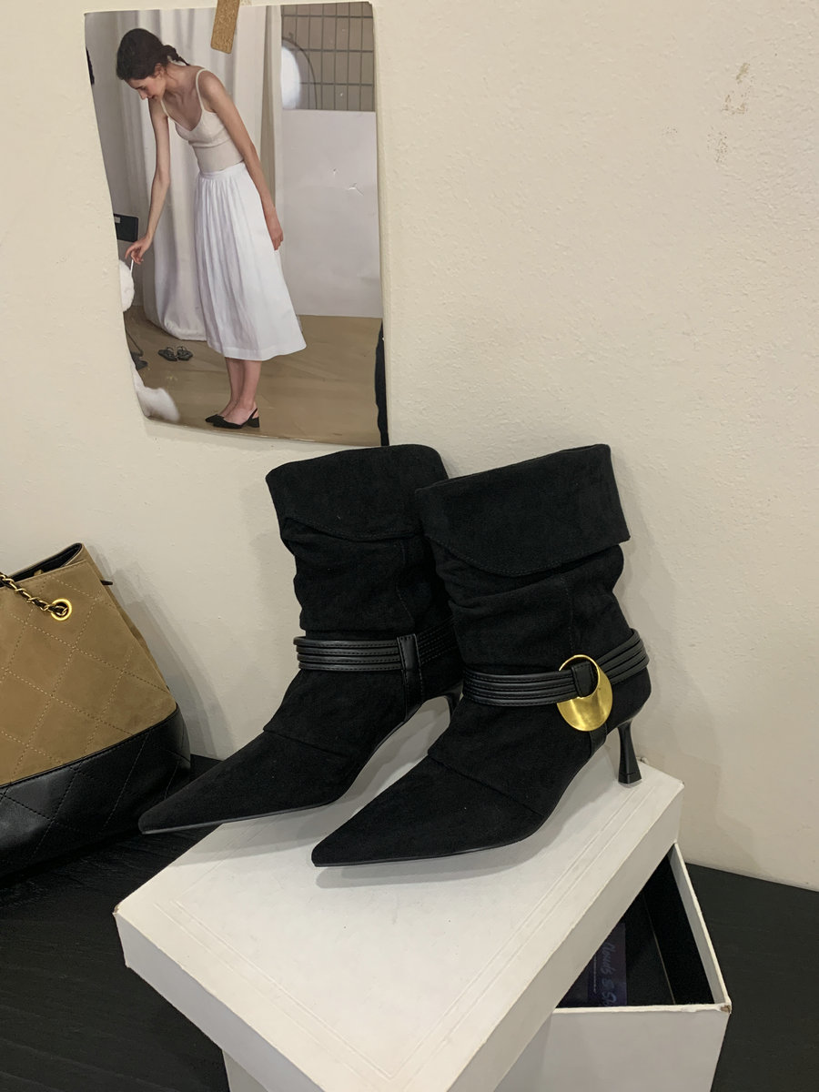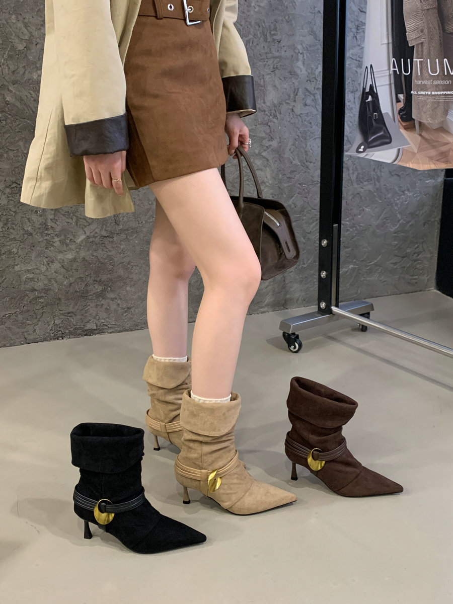 首页 > 短靴 > X-32889# 复古尖头时装靴女秋冬款美拉德西部牛仔靴绒面褶皱小众瘦瘦靴 鞋子批发女鞋批发货源
