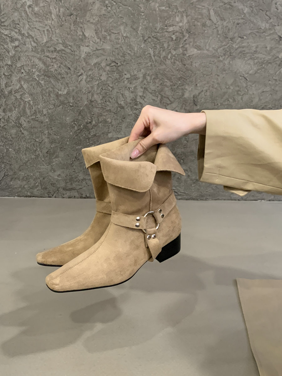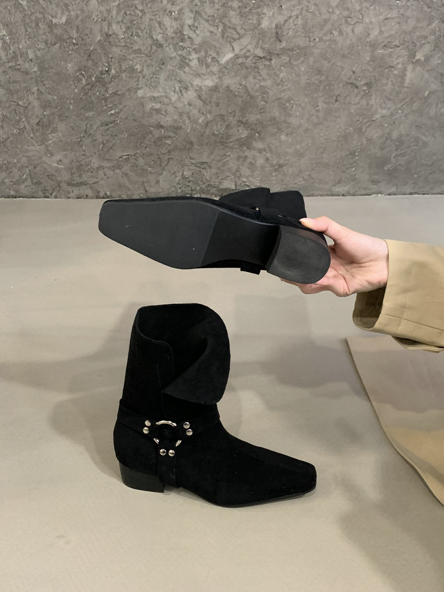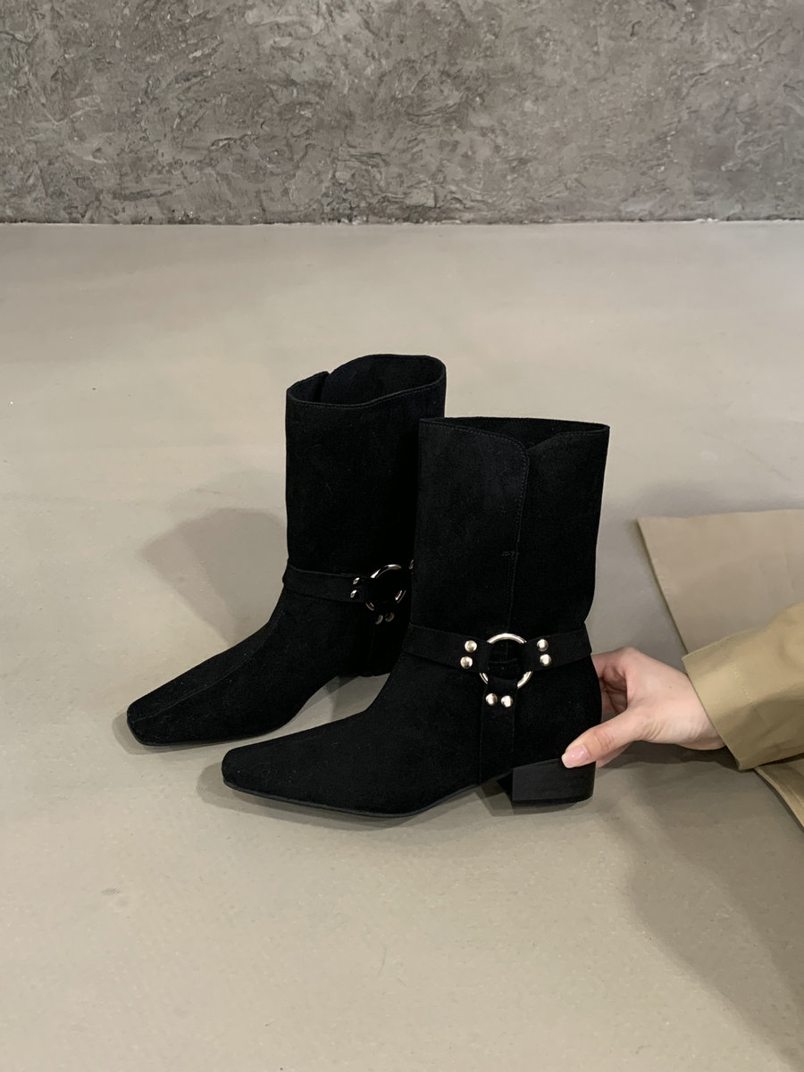 首页 > 短靴 > X-32895# 韩版小方头金属扣粗跟短靴女百搭时尚绒面西部靴中筒靴短靴 鞋子批发女鞋批发货源