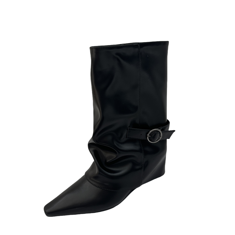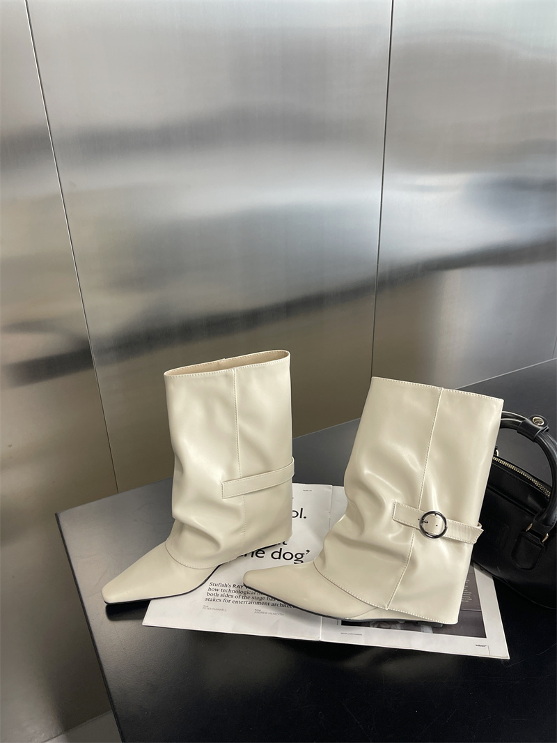 首页 > 短靴 > X-32905# 白色气质坡跟短靴女秋冬新款内增高中筒靴小个子复古裤管靴子 鞋子批发女鞋批发货源
