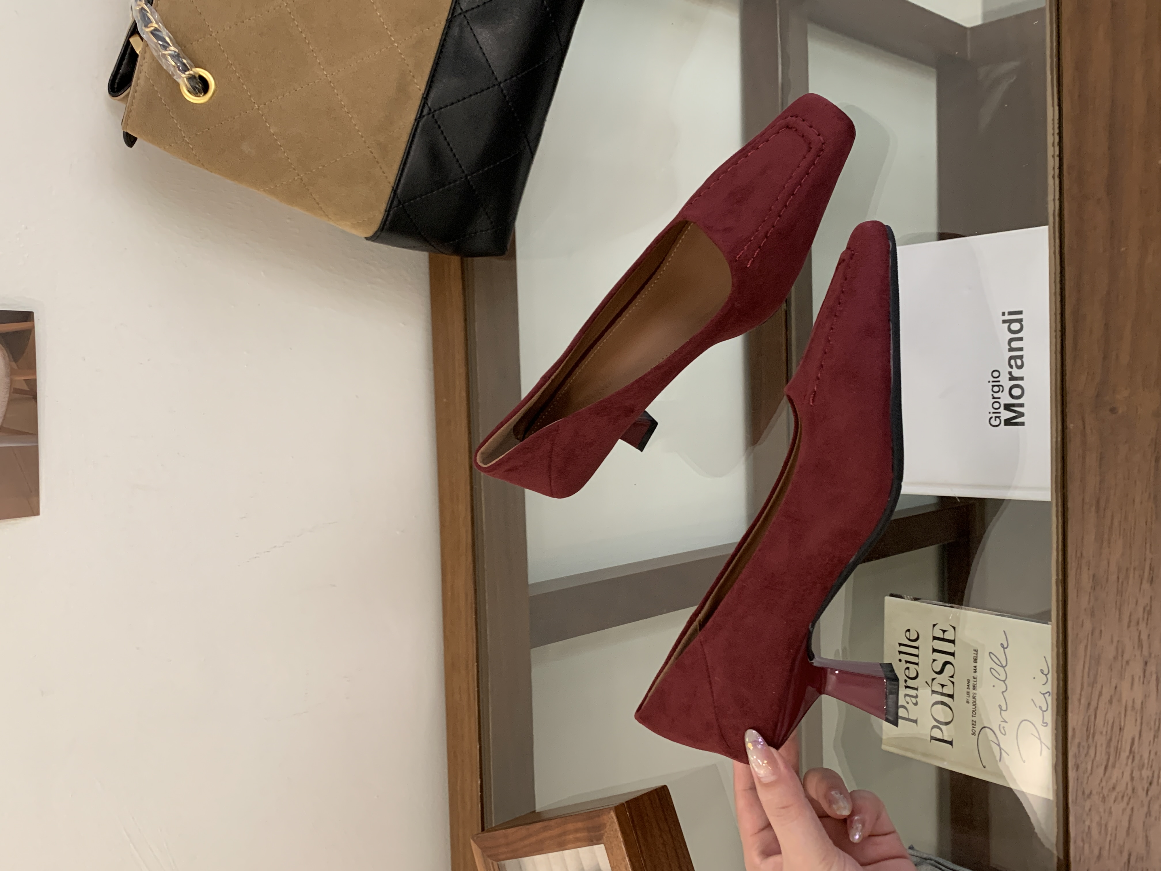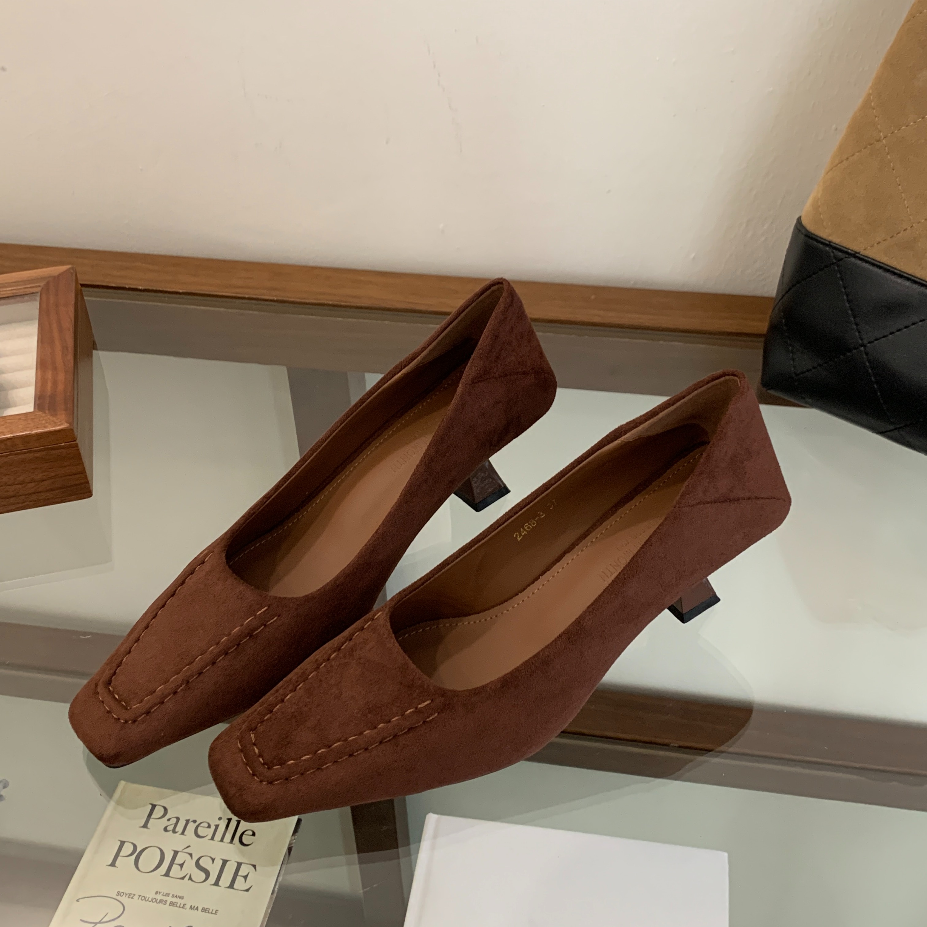 X-32931# 新款秋季时尚百搭气质复古方头绒面高跟舒适通勤单鞋女 鞋子批发女鞋批发货源