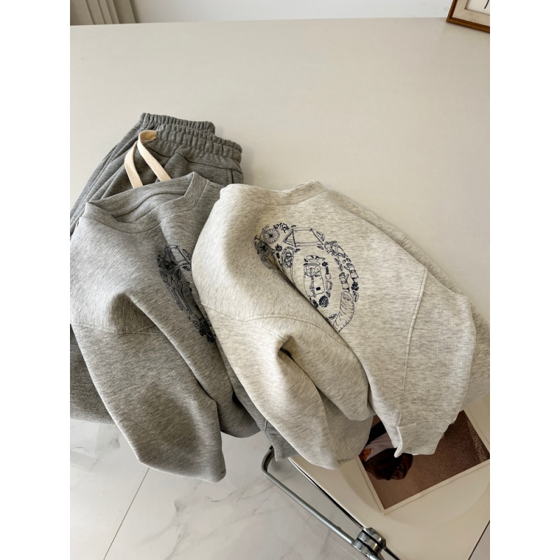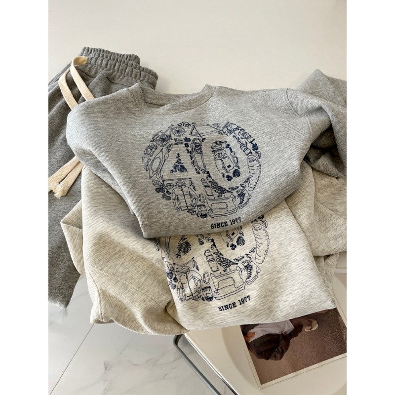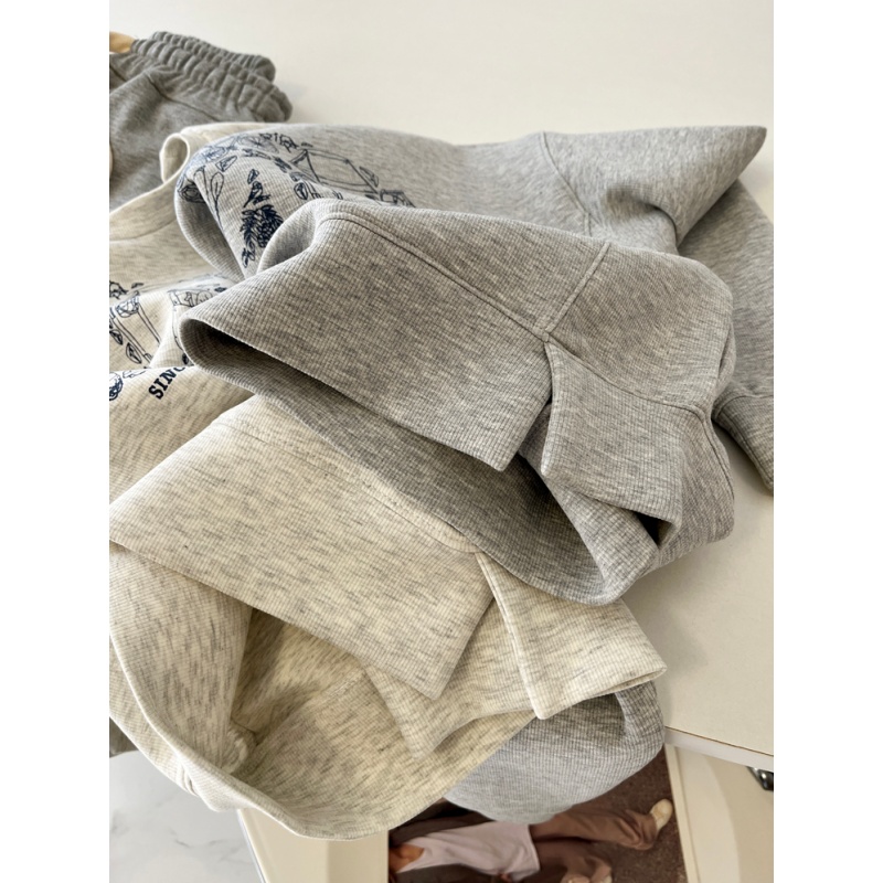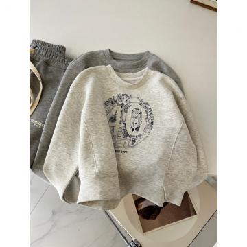 FA50941# 洋气白花灰色短款小个子卫衣女美式宽松圆领印花春秋休闲百搭上衣 服裝批發女裝批發服飾貨源