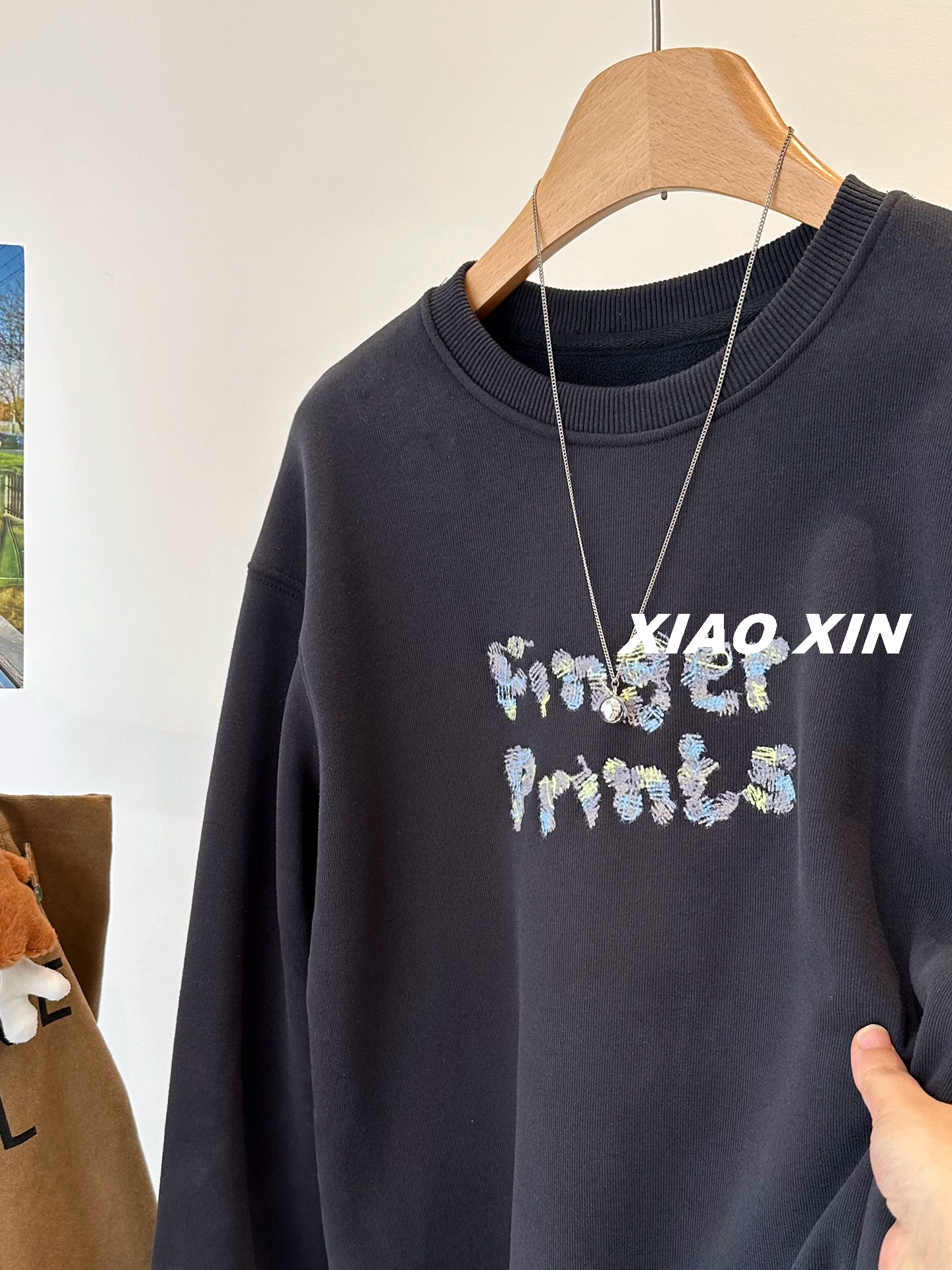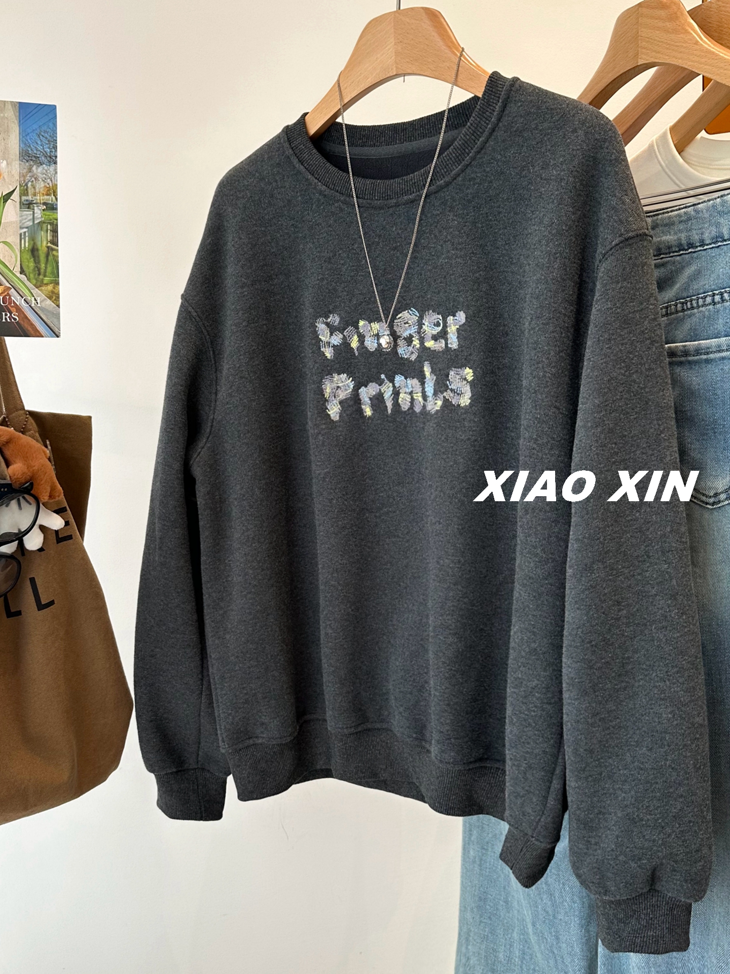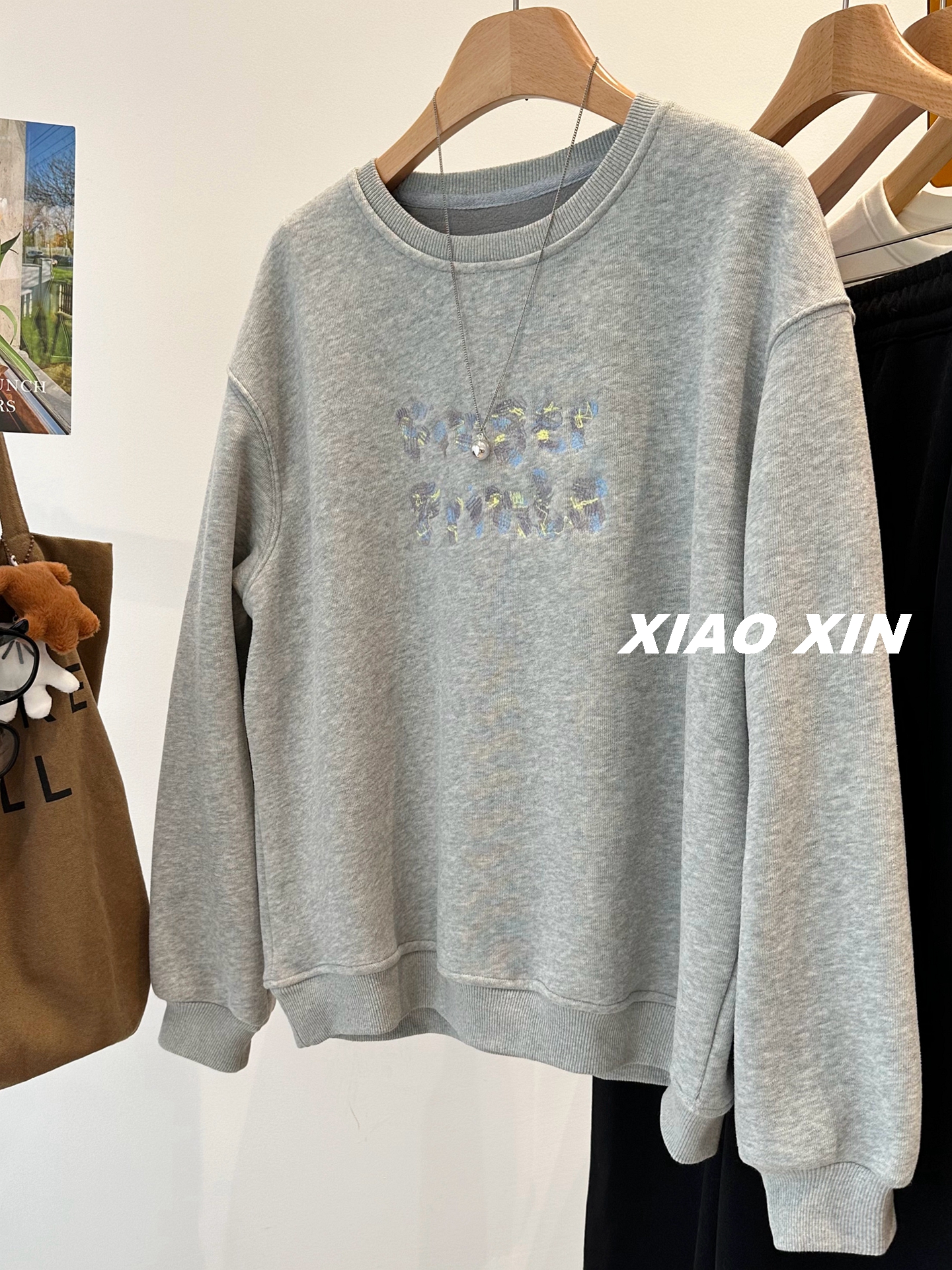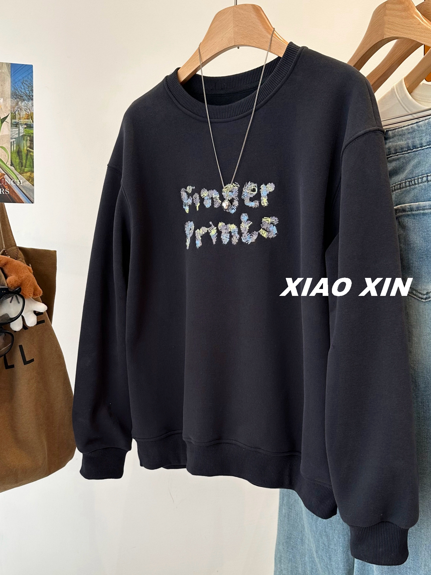 FA50943# 华棉复合超柔大码300斤彩色字母刺绣加绒圆领卫衣女宽松保暖上衣 服裝批發女裝批發服飾貨源