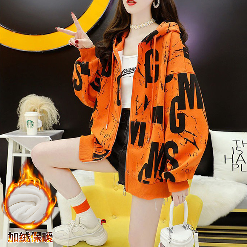 FA50944# 加厚一体绒秋冬新款加绒加厚卫衣女大码开衫外套潮 服裝批發女裝批發服飾貨源