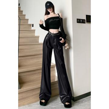 FA50974# 高级感黑色pu皮阔腿裤女秋冬新款时尚辣妹高腰宽松休闲拖地裤 服裝批發女裝批發服飾貨源