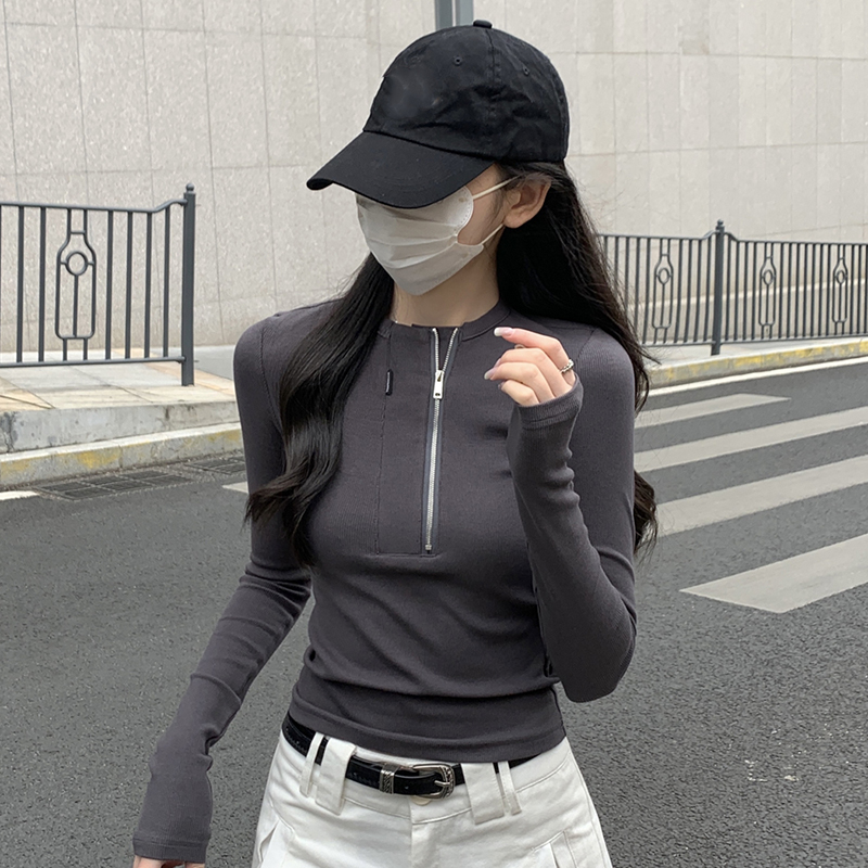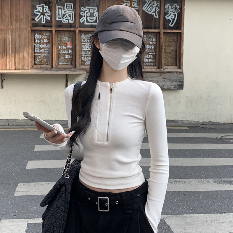 FA51812# 美式短款上衣女秋季内搭打底独特酷飒拽姐搭配长袖T恤 服裝批發女裝批發服飾貨源