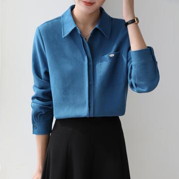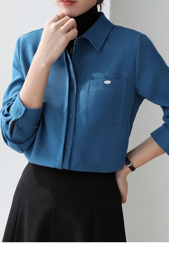 FA51838# 免烫磨毛衬衫女秋冬新款基础百搭多巴胺polo领长袖打底衫 服裝批發女裝批發服飾貨源