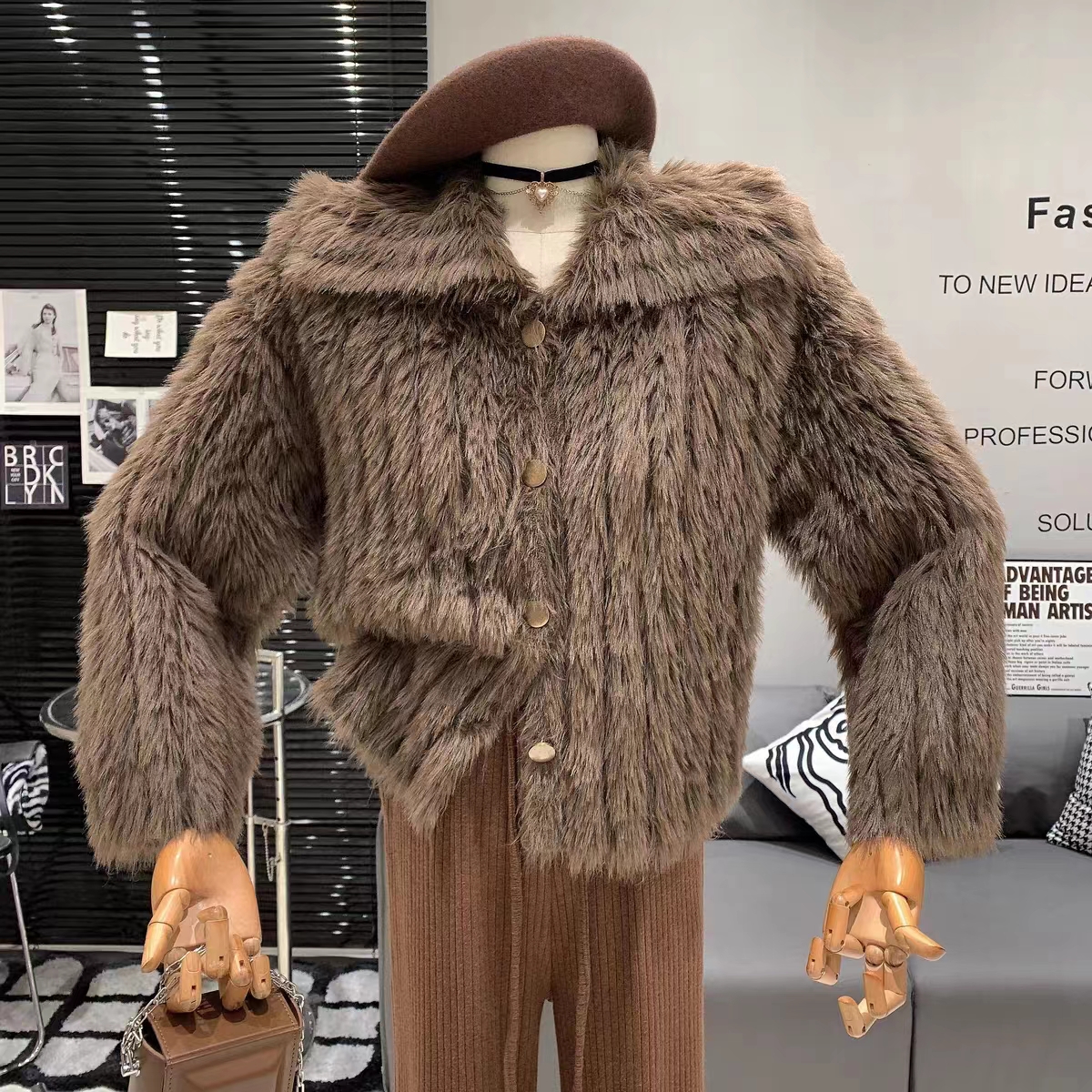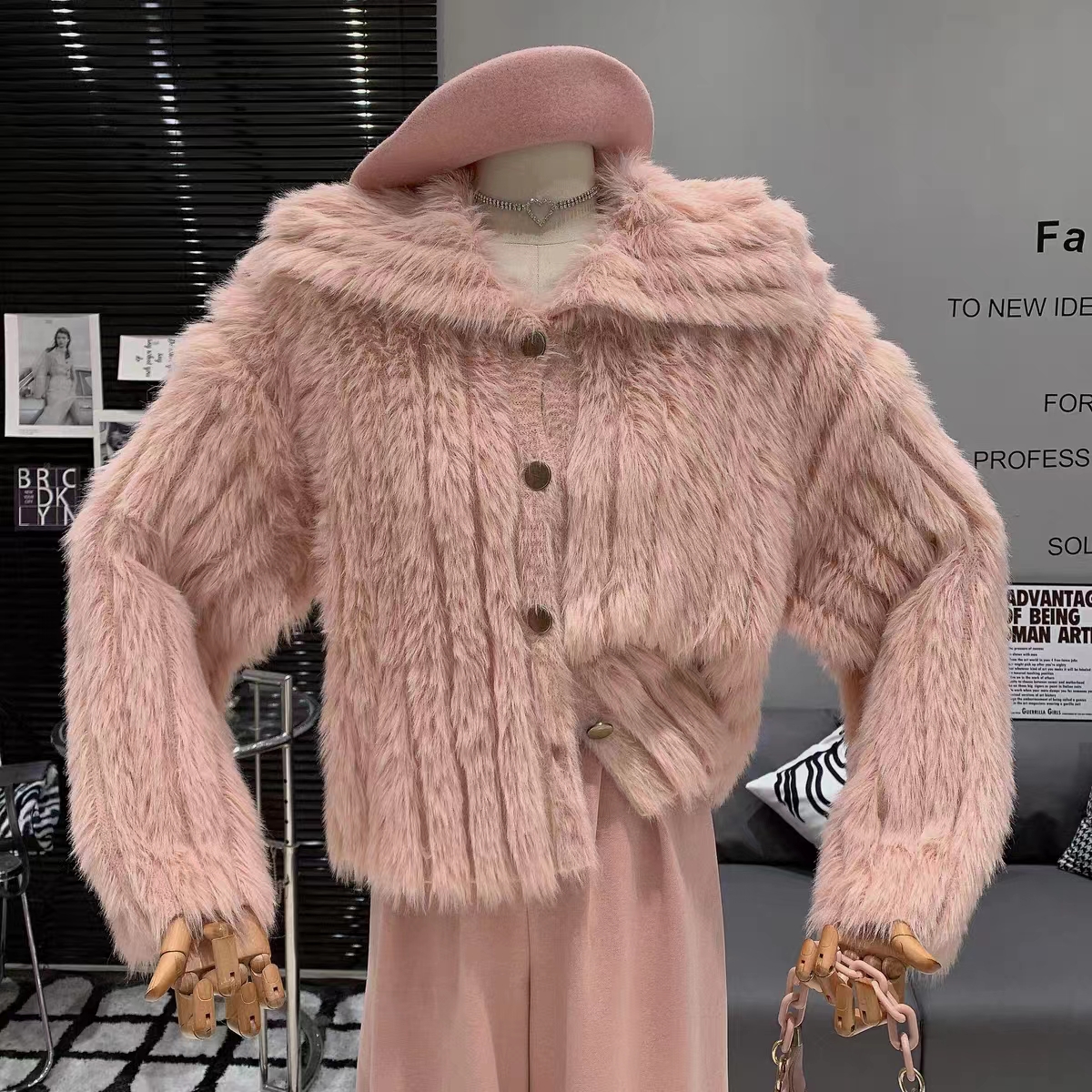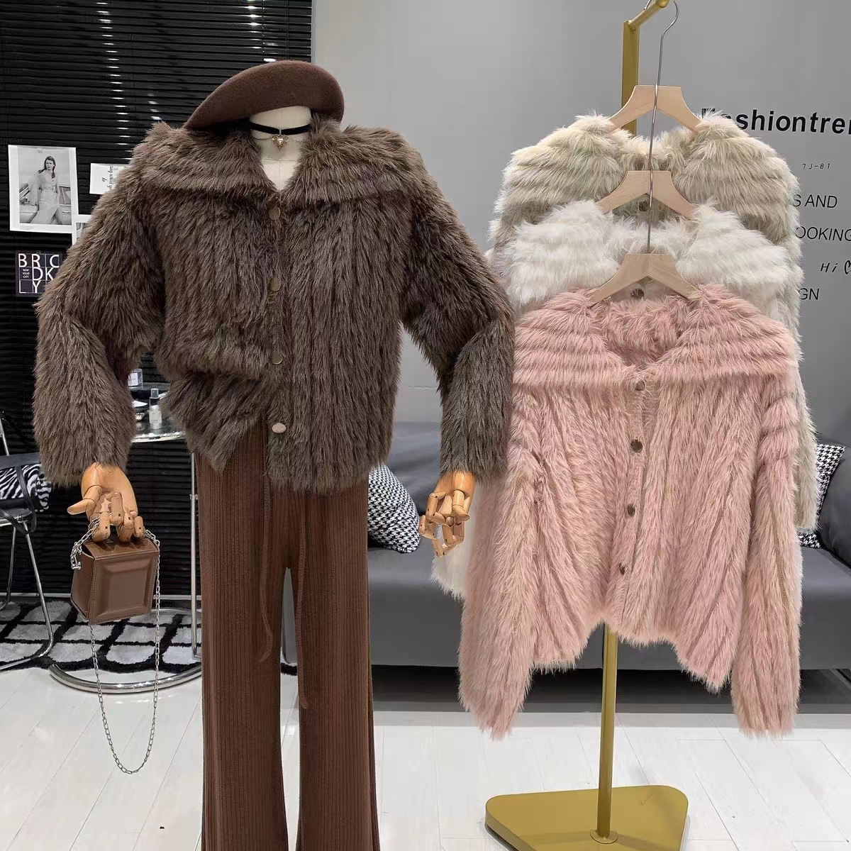 FA51873# 小清新甜美优雅气质法式复古慵懒风软糯短款翻领毛绒绒洋气外套女 服裝批發女裝批發服飾貨源