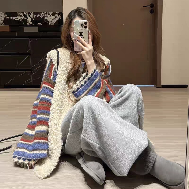 FA51880# 韩系复古撞色条纹毛衣女秋冬可外穿慵懒风宽松软糯针织衫内搭上衣 服裝批發女裝批發服飾貨源