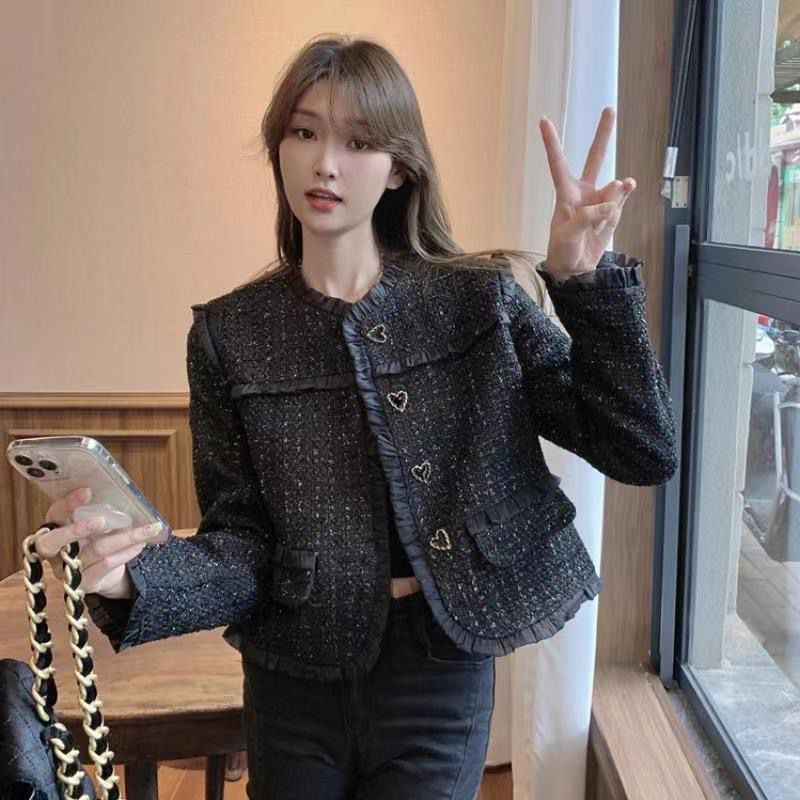 FA51900# 爱心扣小香风外套女春季新款百搭粗花呢法式气质上衣短款女 服裝批發女裝批發服飾貨源