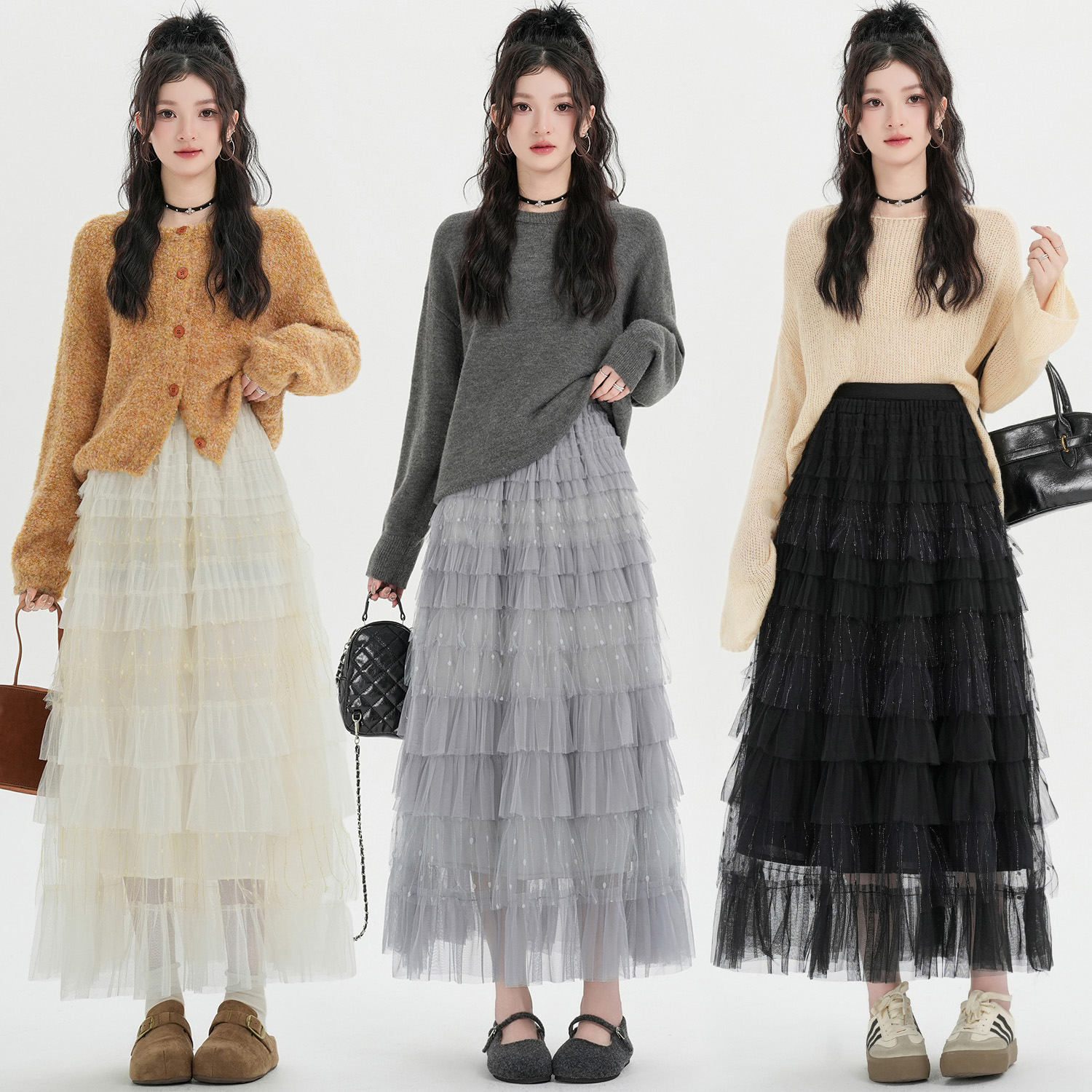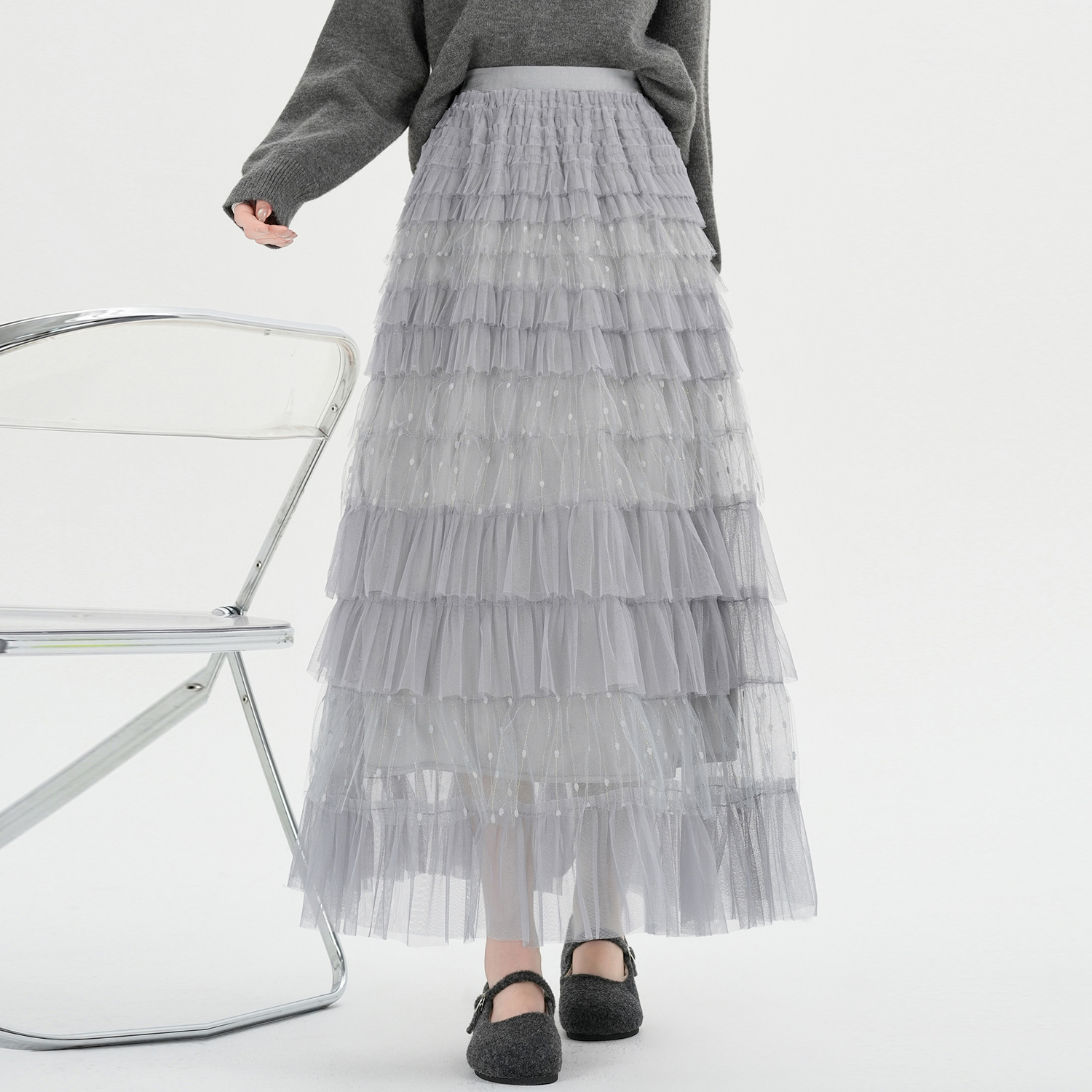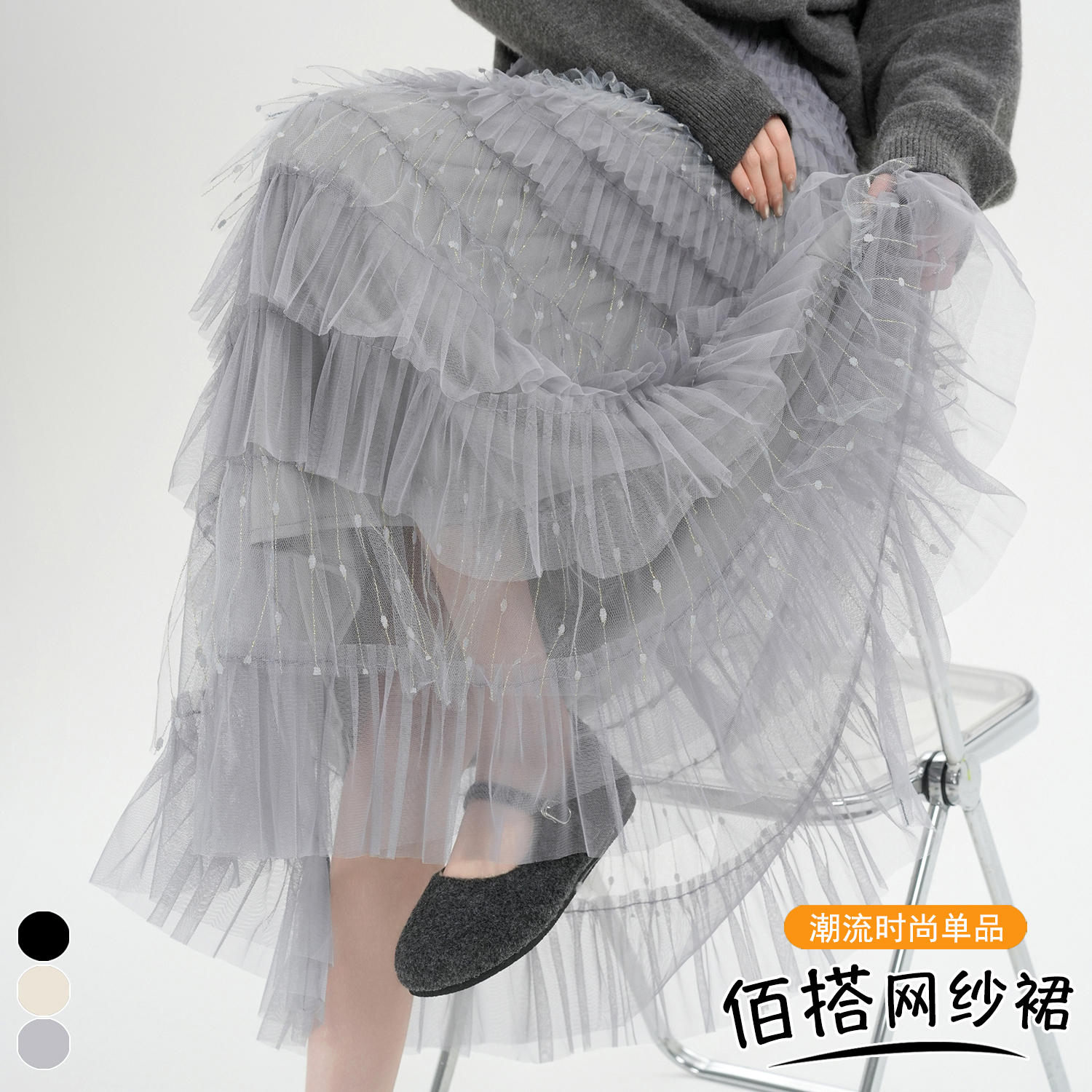 FA51905# 韩系甜美重工多层纱裙时尚蛋糕裙设计感高腰显瘦仙女长裙 服裝批發女裝批發服飾貨源