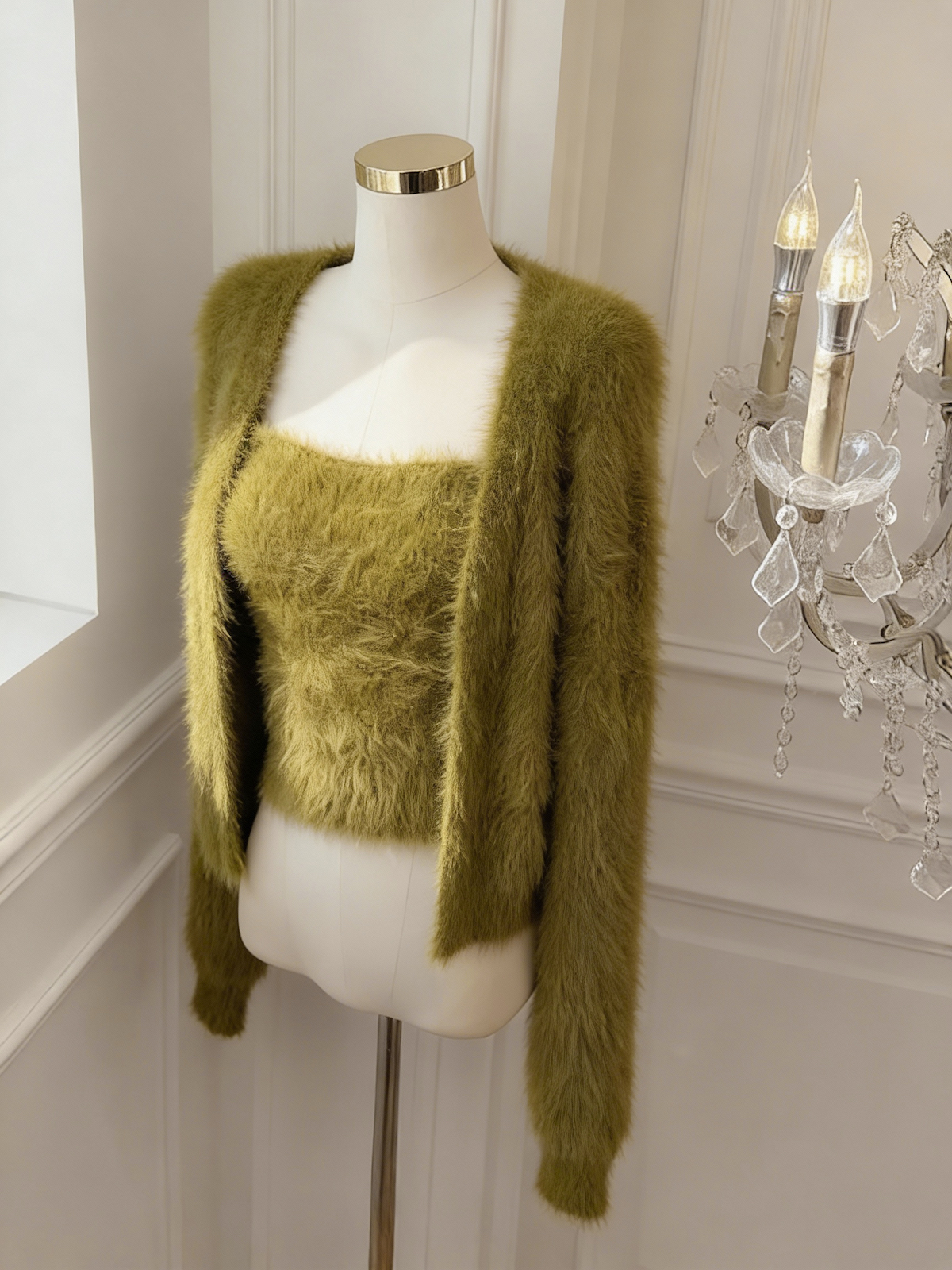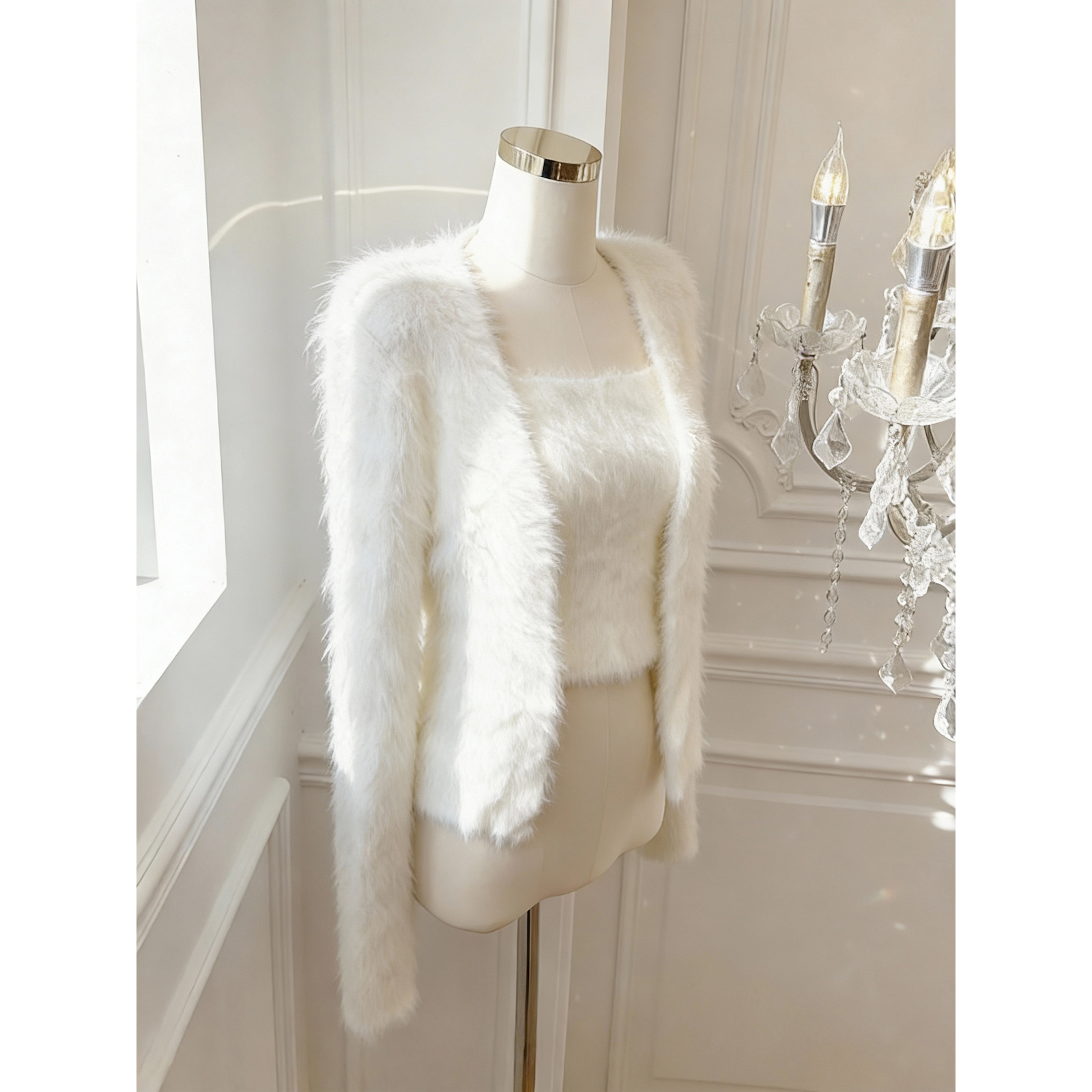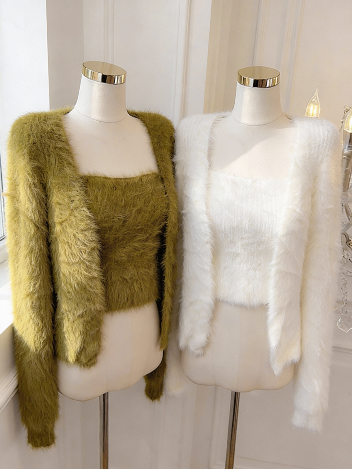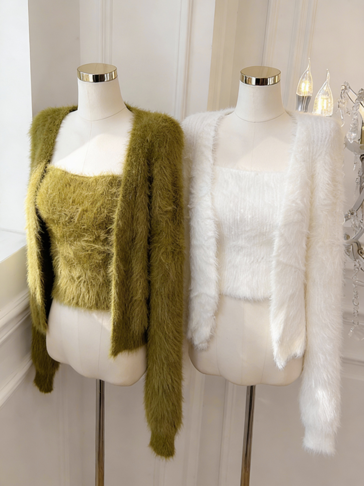 FA51931# 温柔慵懒风仿貂绒针织开衫吊带背心两件套女显瘦套装 服裝批發女裝批發服飾貨源