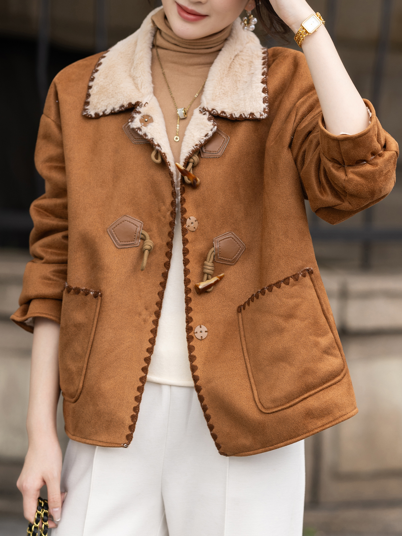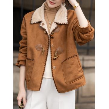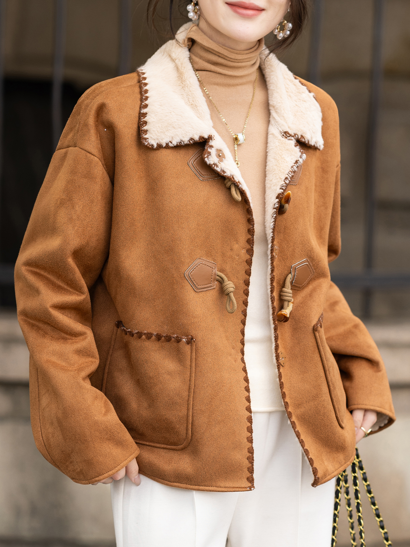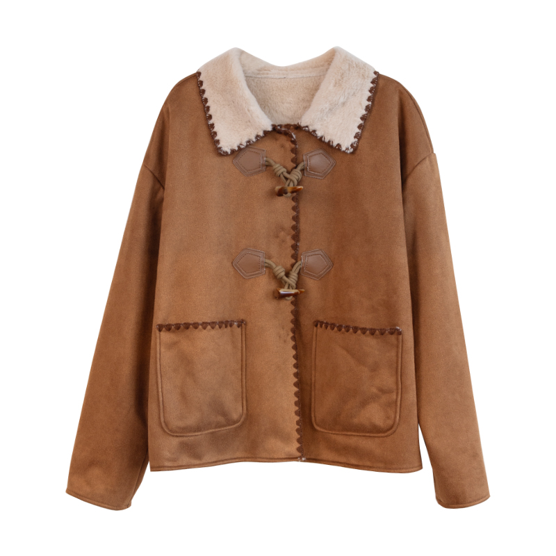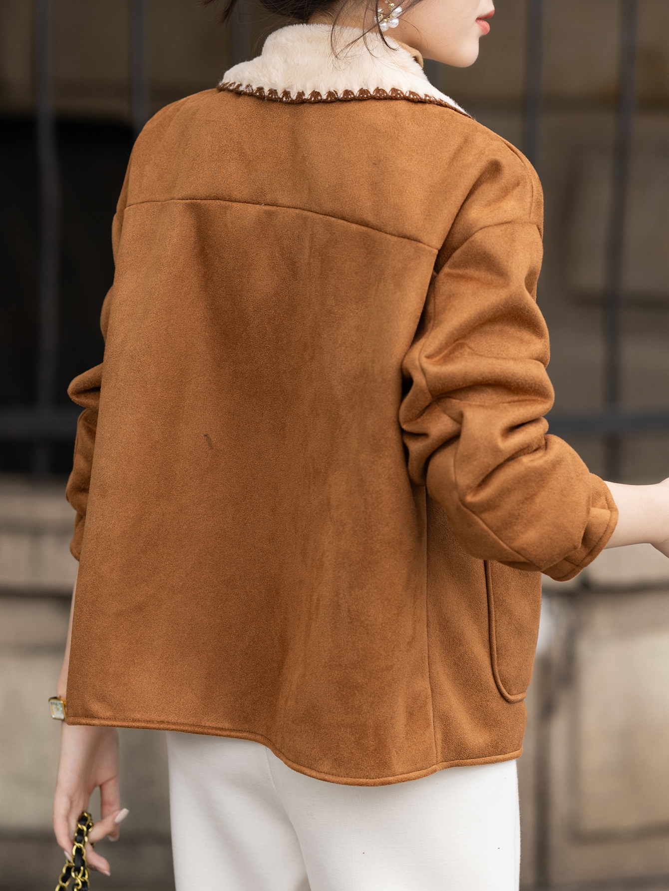 FA52014# 秋冬新款仿麂皮环保皮草翻领棕色毛毛外套 服裝批發女裝批發服飾貨源