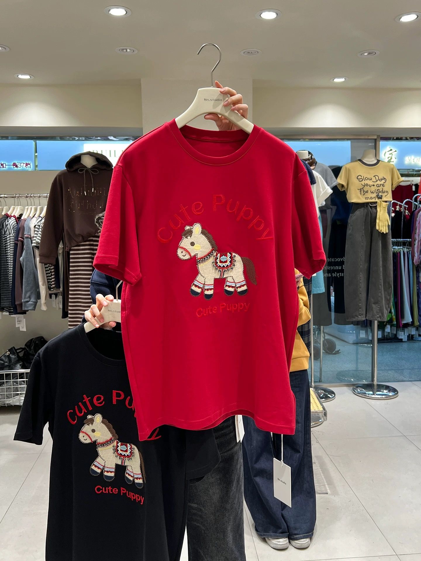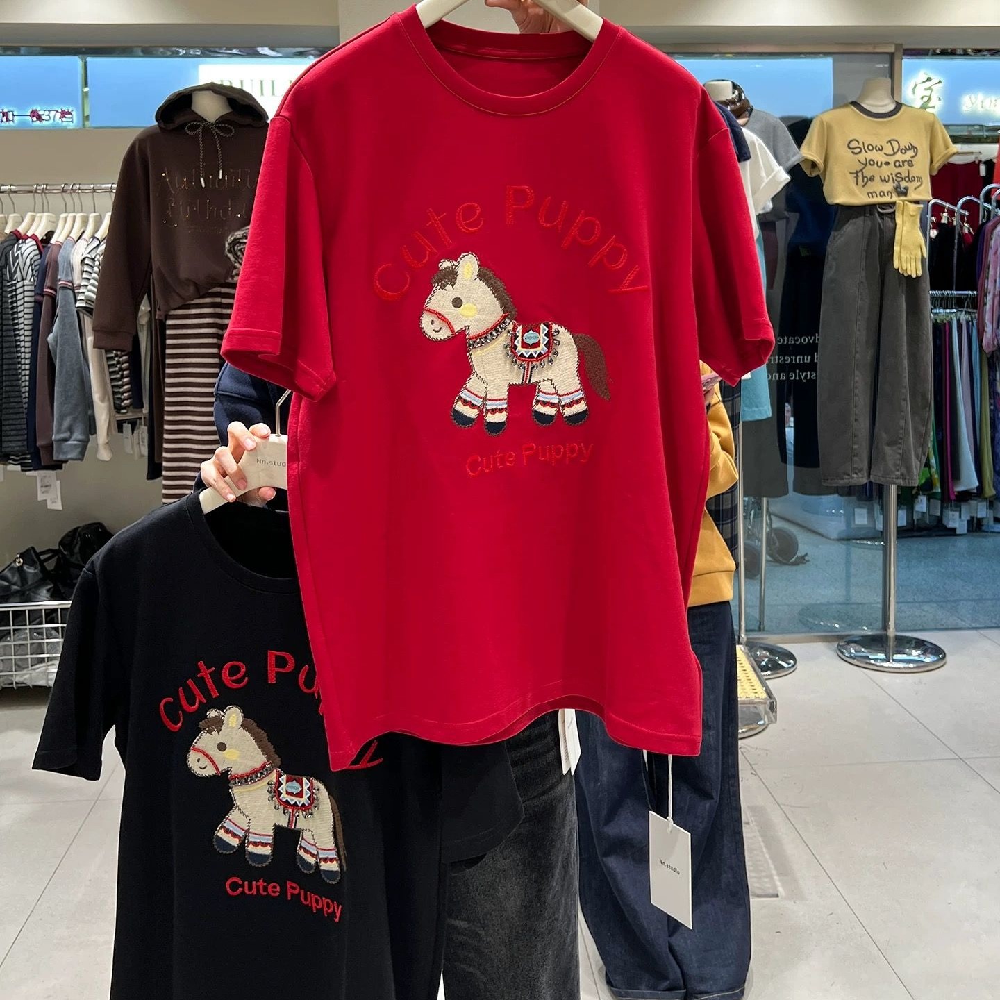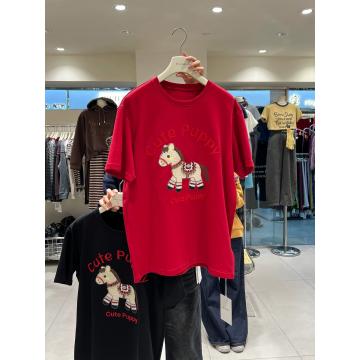FA54522# 原版德绒特大码300斤马年氛围感短袖T恤女春秋厚款刺绣上衣潮 服裝批發女裝批發服飾貨源