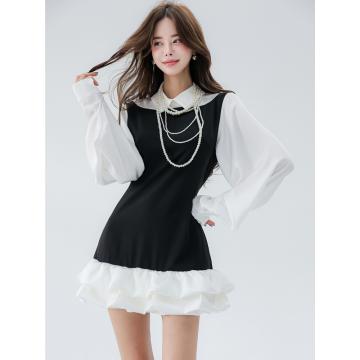 颜色: 黑拼白色面料: 100%聚酯纤维尺寸 M码: 肩宽40 胸围92 腰围80 袖长64 衣长79 L 码: 肩宽41 胸围96 腰围84 袖长65 衣长80 (手工测量存在1-3CM误差,请悉知)