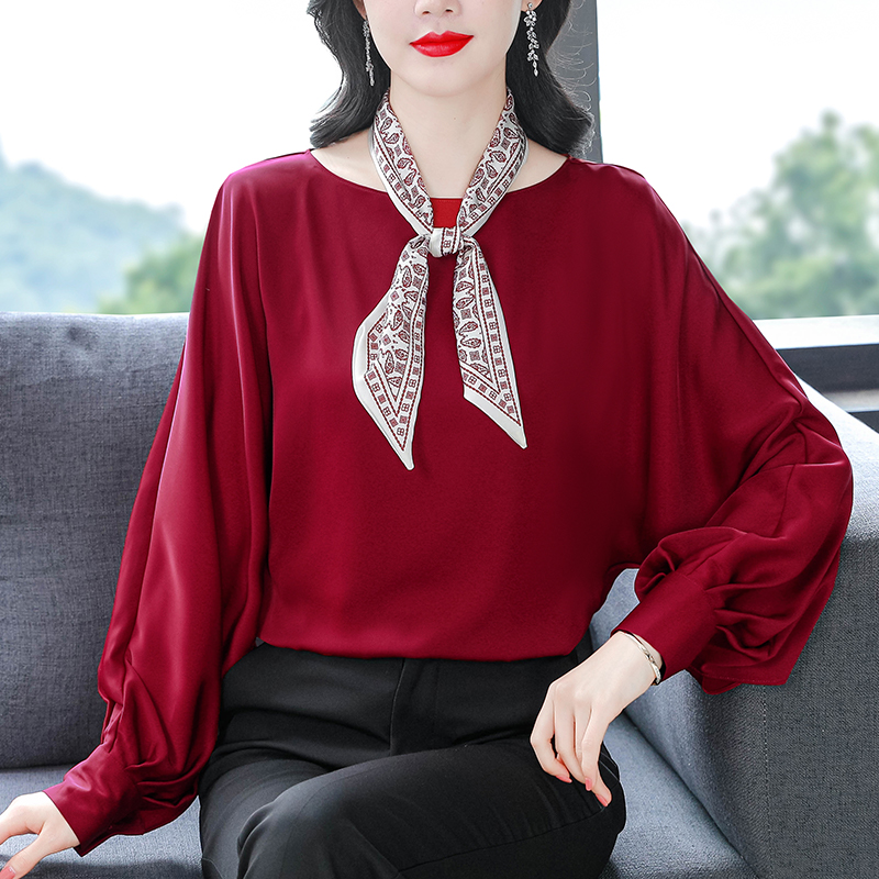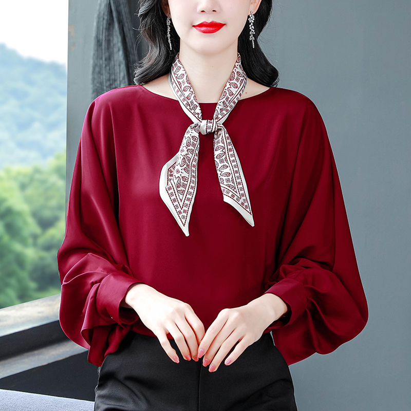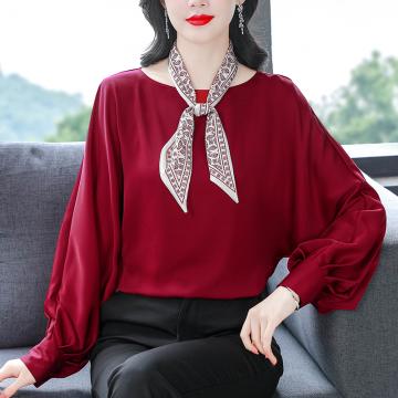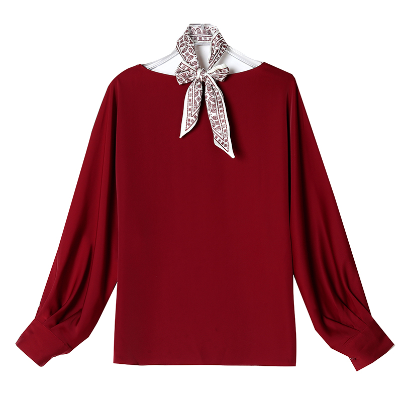 FA54897# 圆领雪纺上衣女长袖春装新款蝴蝶结衬衫宽松套头遮肚小衫 服裝批發女裝批發服飾貨源