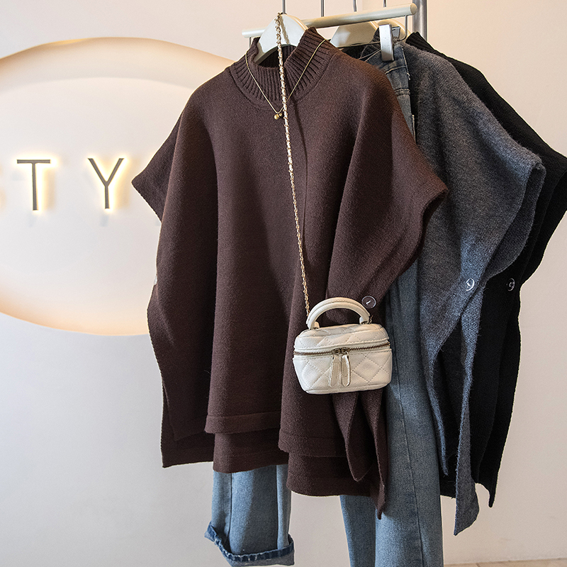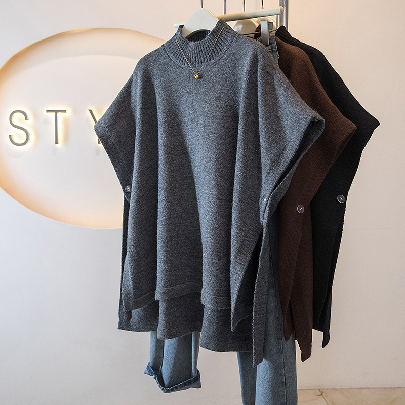FA54904# 大码女装冬季新款韩版慵懒宽松针织设计蝙蝠针织毛衣高领上衣 服裝批發女裝批發服飾貨源