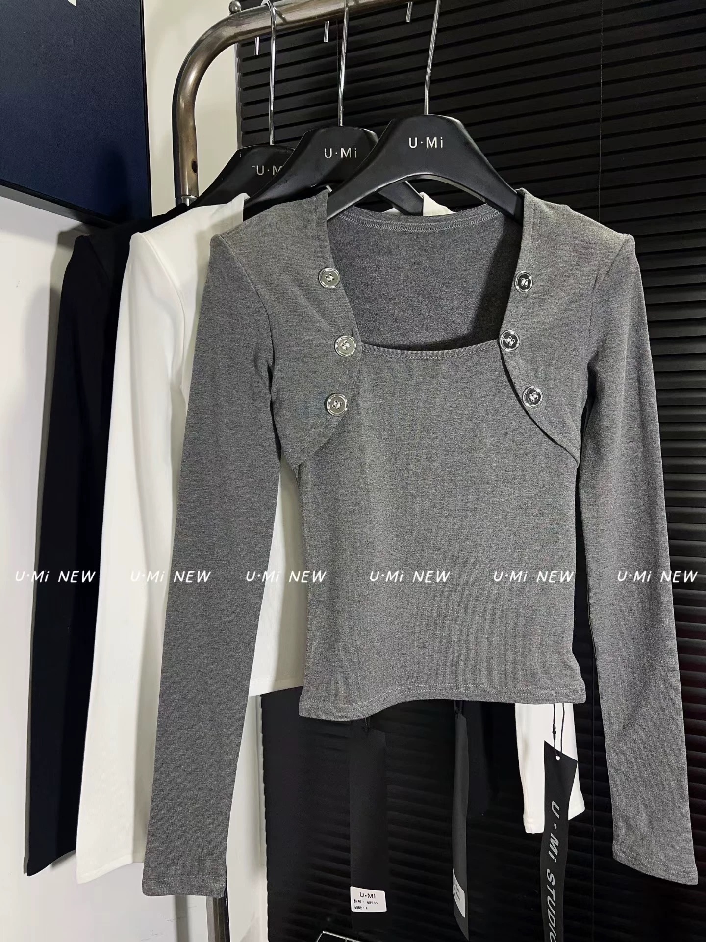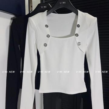 FA54916# 春季新款韩版纯欲风U领长袖T恤修身显瘦打底衫女 服裝批發女裝批發服飾貨源