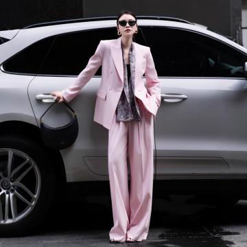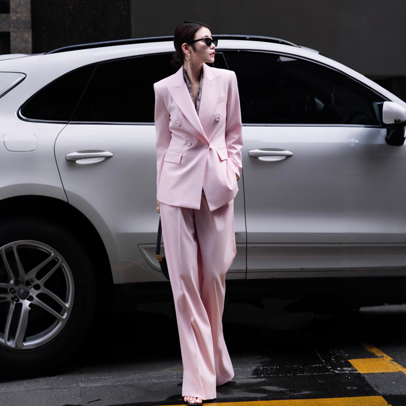 FA55242# 春季新款设计感配丝巾西装阔腿裤时尚休闲春装西装套装 服裝批發女裝批發服飾貨源