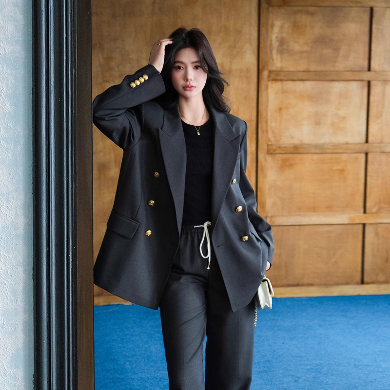 FA55243# 春季新款时尚套装戗驳领西装女西装裤早春西装套装两件套 服裝批發女裝批發服飾貨源
