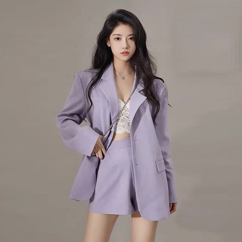 FA55244# 春季新款法式时尚御姐小香风紫色西装短裤早春两件套装 服裝批發女裝批發服飾貨源