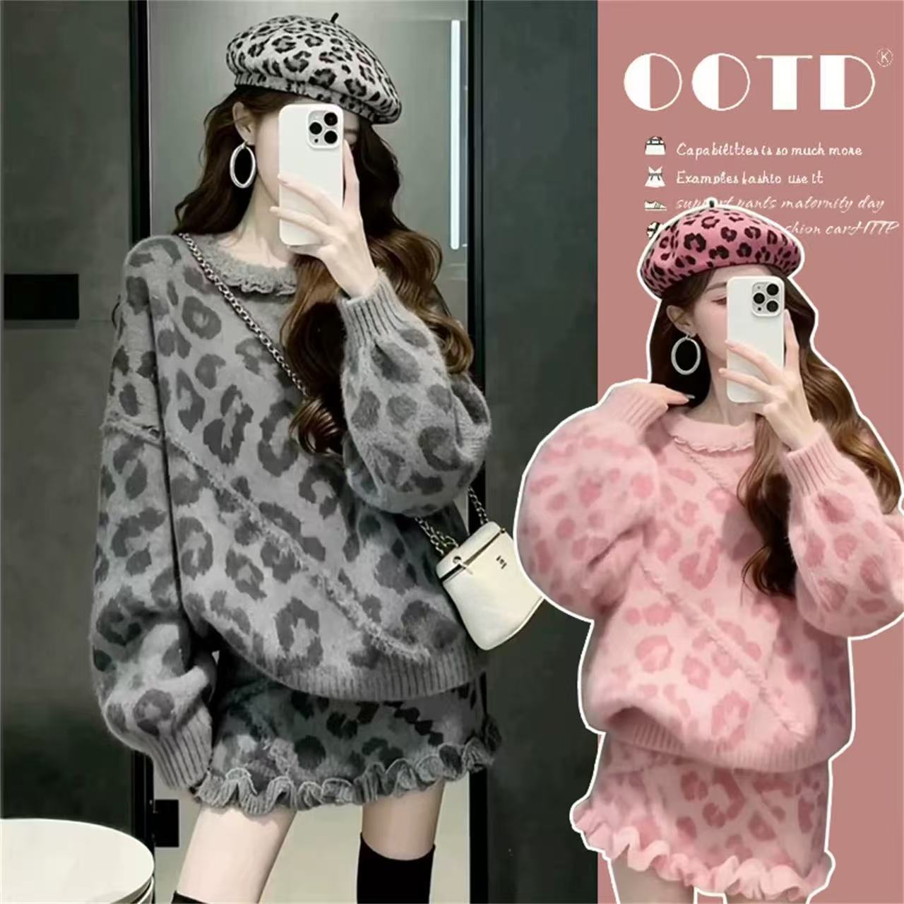 粉色毛衣+粉色短裙