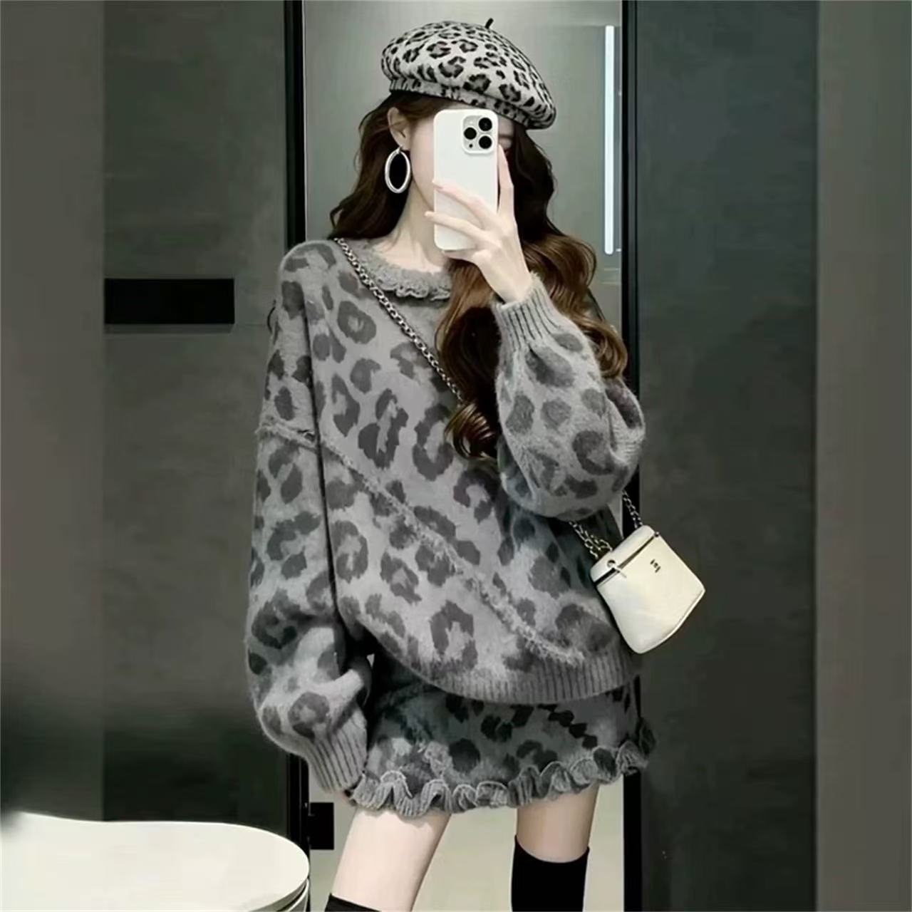 灰色毛衣+灰色短裙