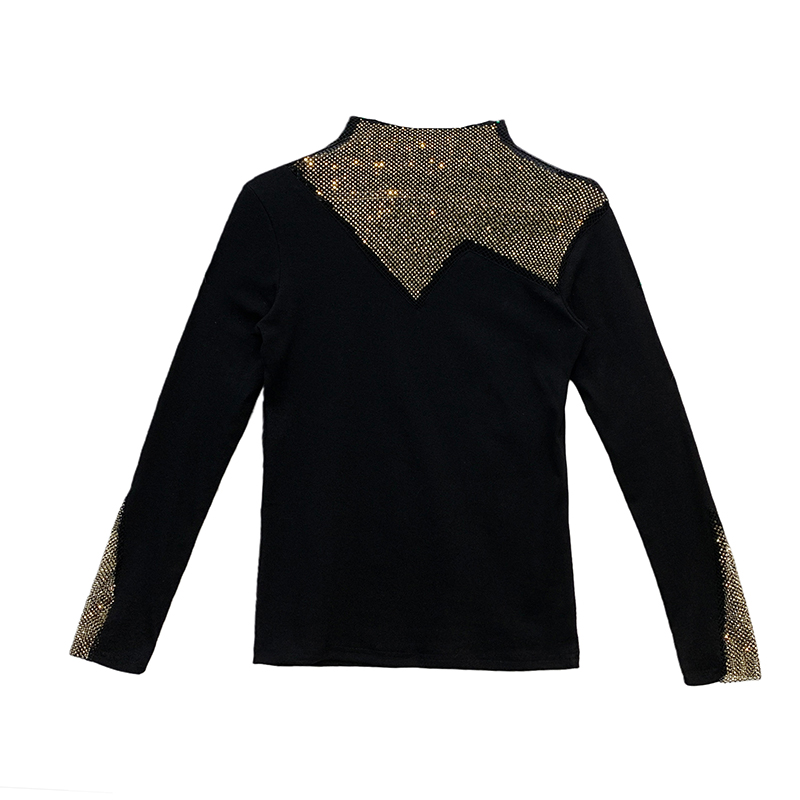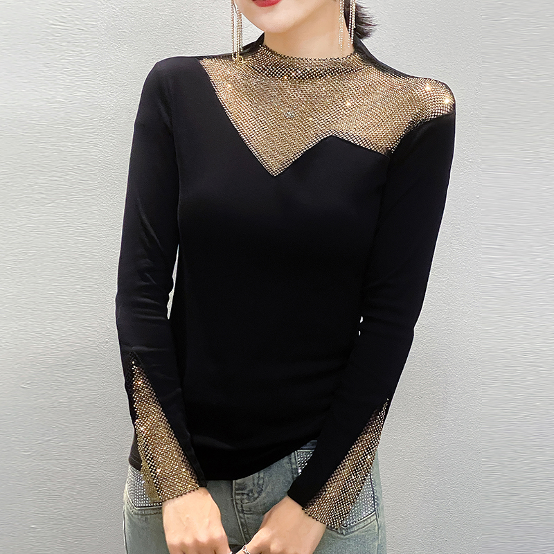 FA55320# 欧洲站秋冬新款高领时尚镂空气质网钻修身长袖打底衫女潮 服裝批發女裝批發服飾貨源