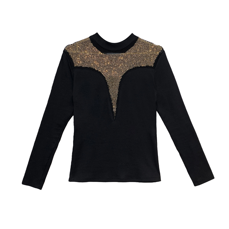 FA55321# 欧洲站秋冬新款高领时尚镂空气质网钻修身长袖打底衫女潮 服裝批發女裝批發服飾貨源