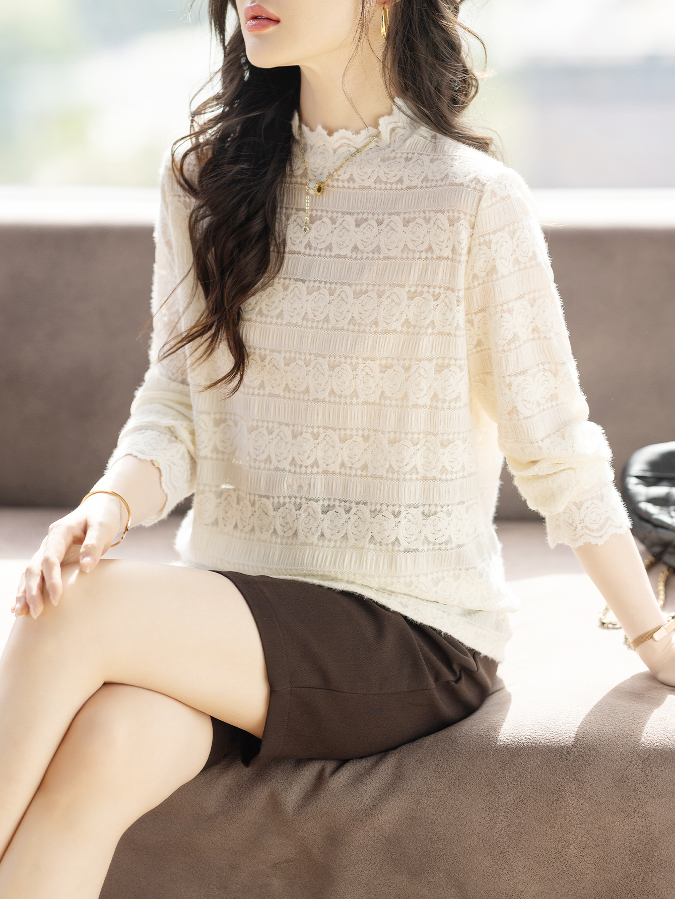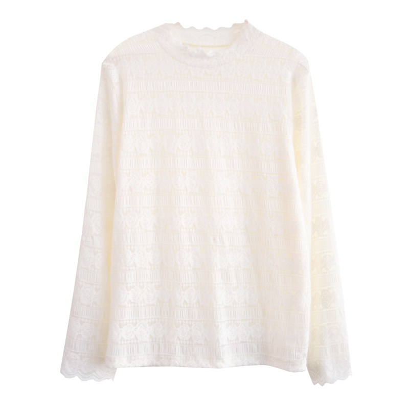 FA55333# 小半高领蕾丝打底衫女春季新款长袖T恤内搭 服裝批發女裝批發服飾貨源