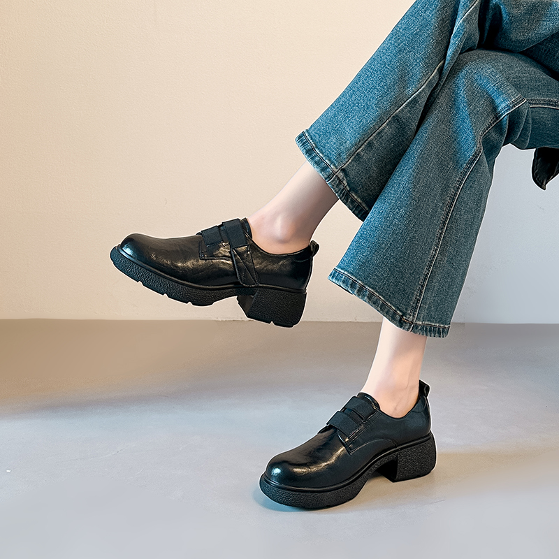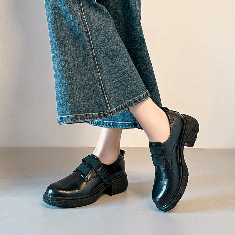 X-32973#原创高定版巨舒服踩屎感超软复古粗跟乐福单鞋女厚底圆头皮鞋 鞋子批发女鞋批发高跟鞋批发