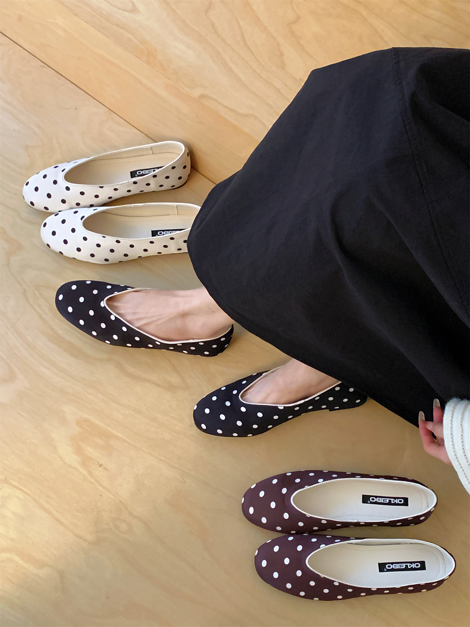 X-32995#式复古波点芭蕾风单鞋新款浅口晚晚风小众缎面奶奶鞋平底鞋 鞋子批发女鞋批发高跟鞋批发