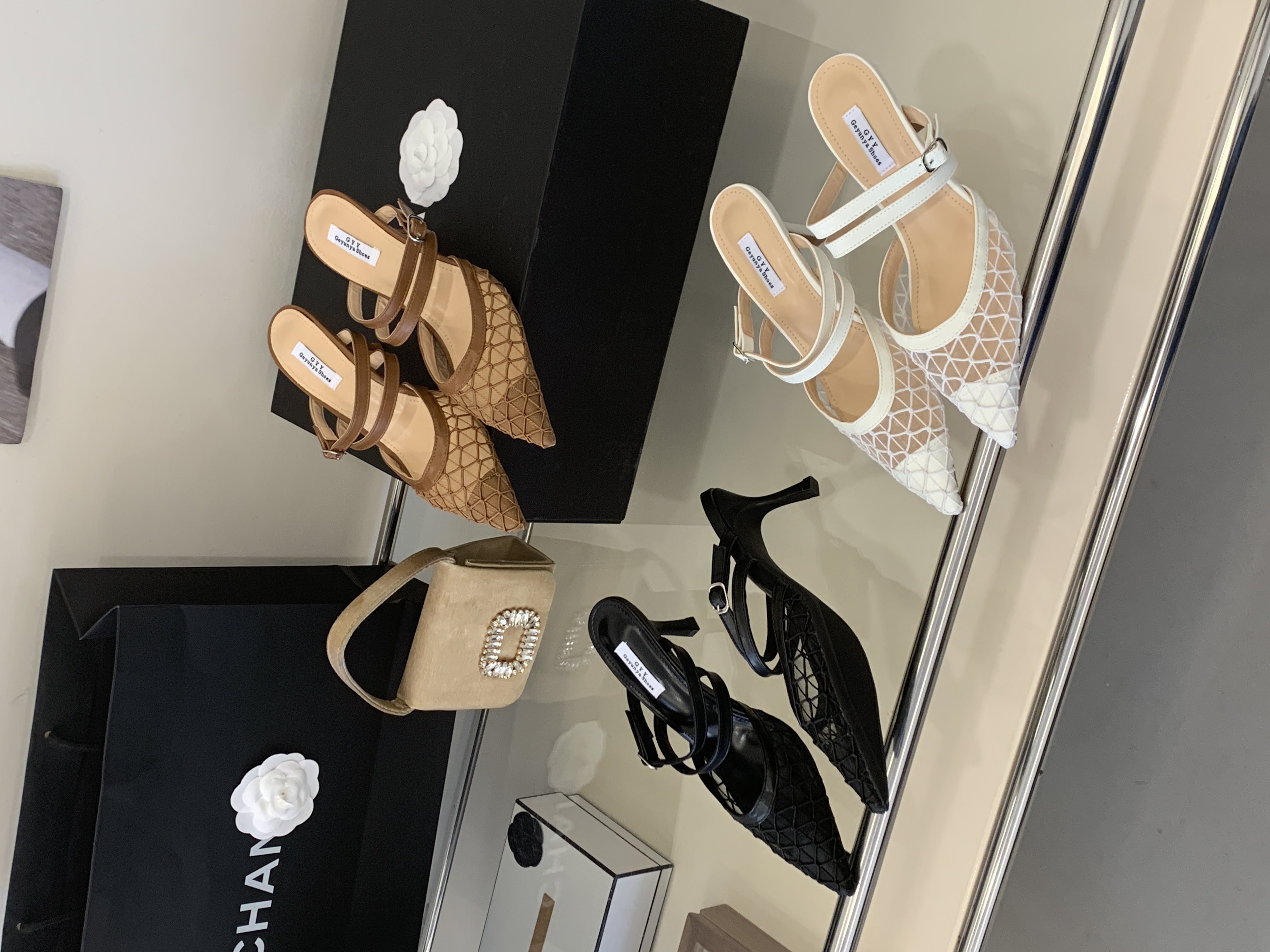 X-32998#新品尖头网纱一字带细高跟韩系高跟拖鞋外穿35-40 鞋子批发女鞋批发高跟鞋批发