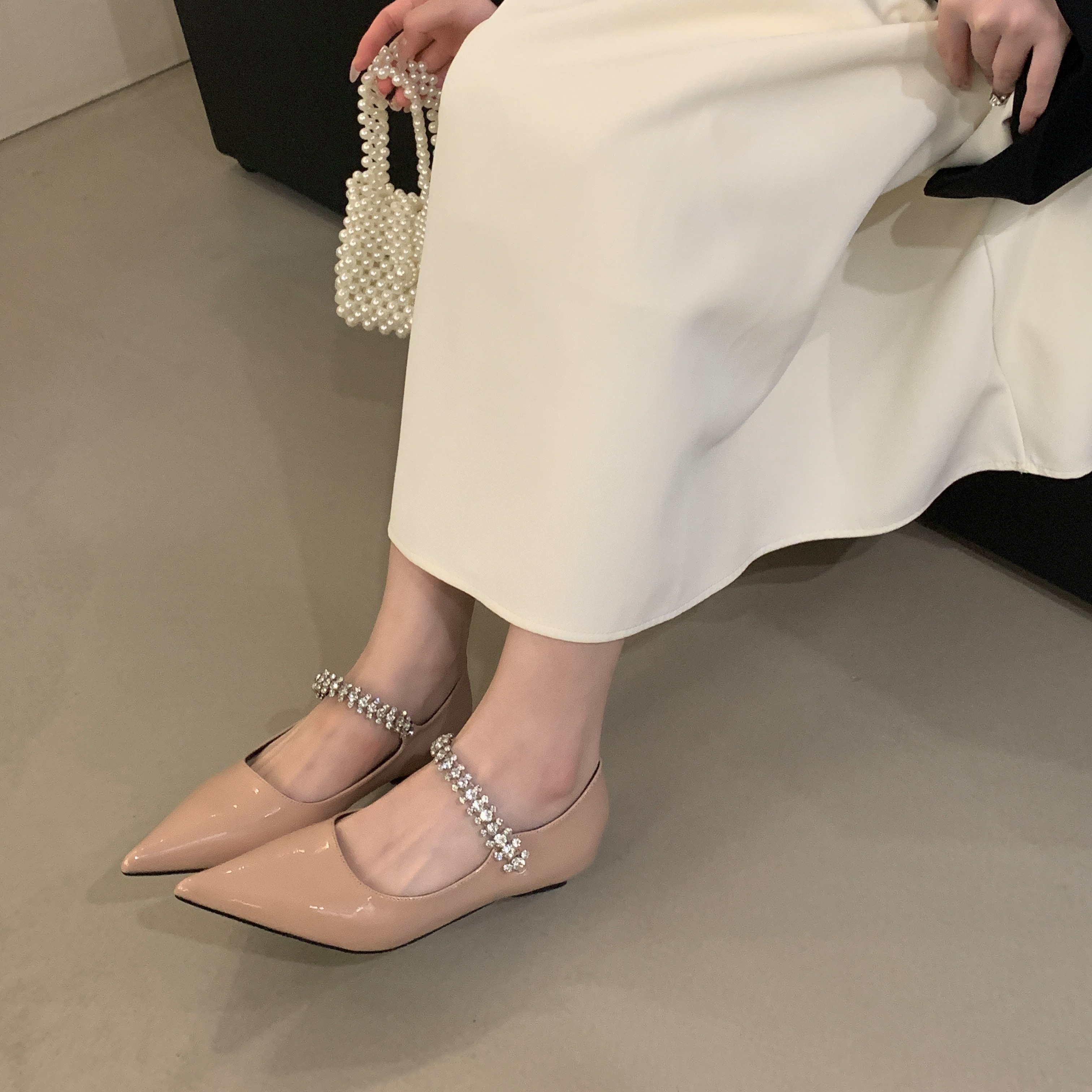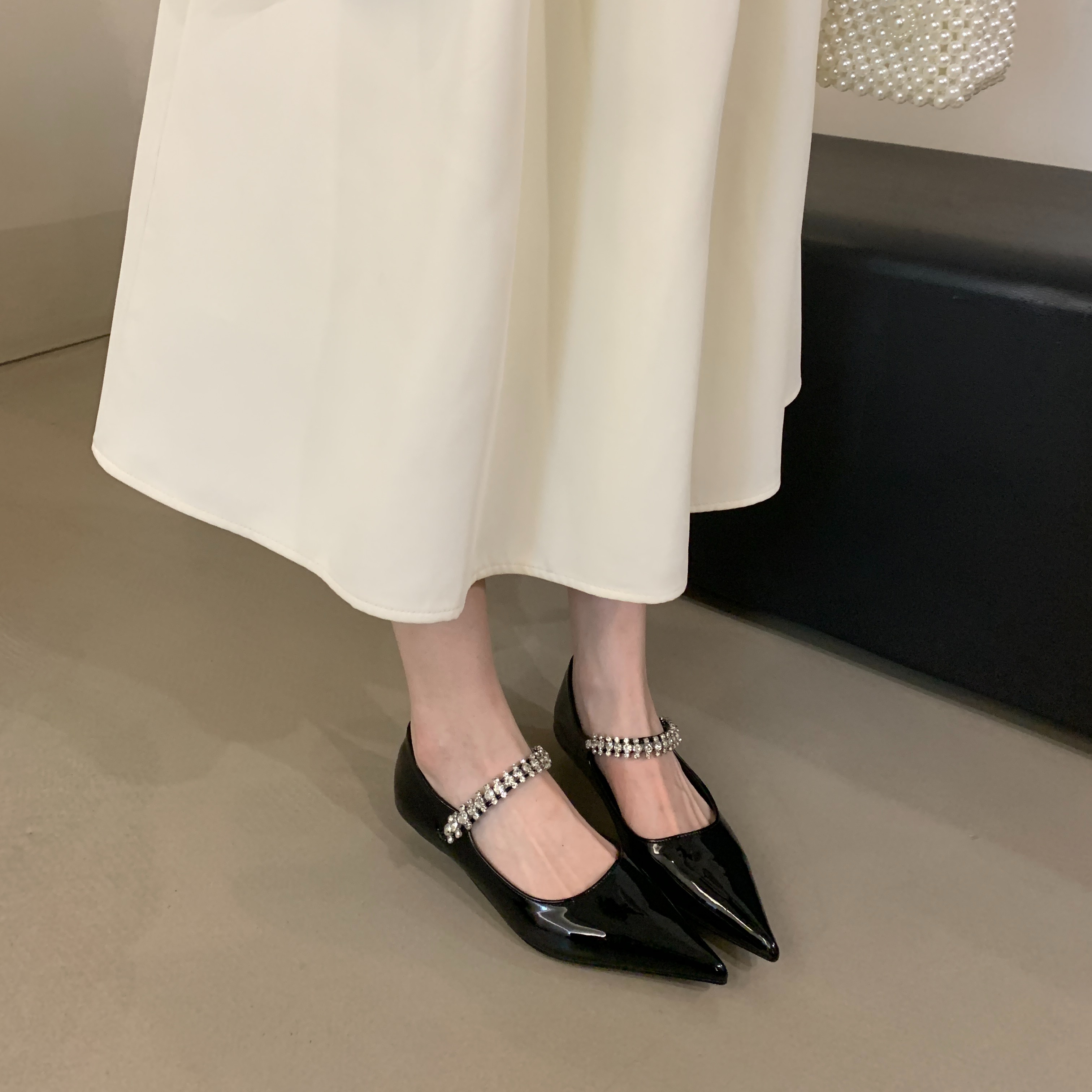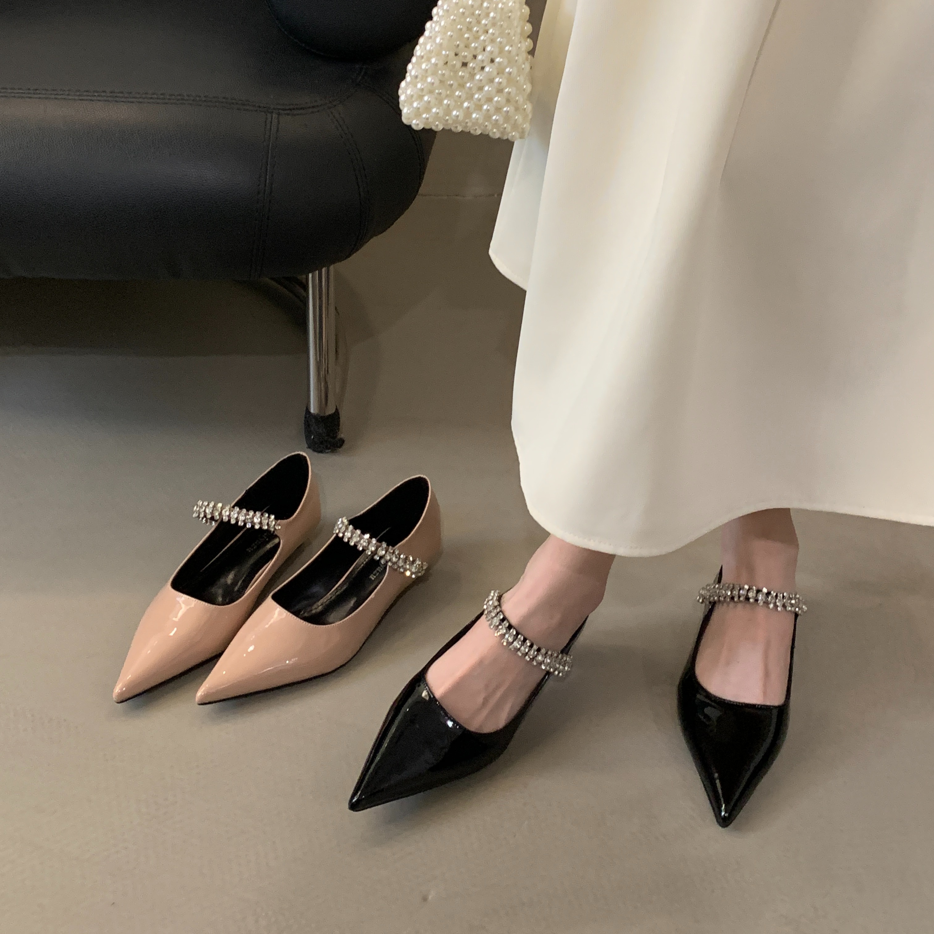 X-33007# 显瘦法式尖头单鞋女新款春秋水钻一字带玛丽珍鞋浅口粗跟女鞋 鞋子批发女鞋批发高跟鞋批发