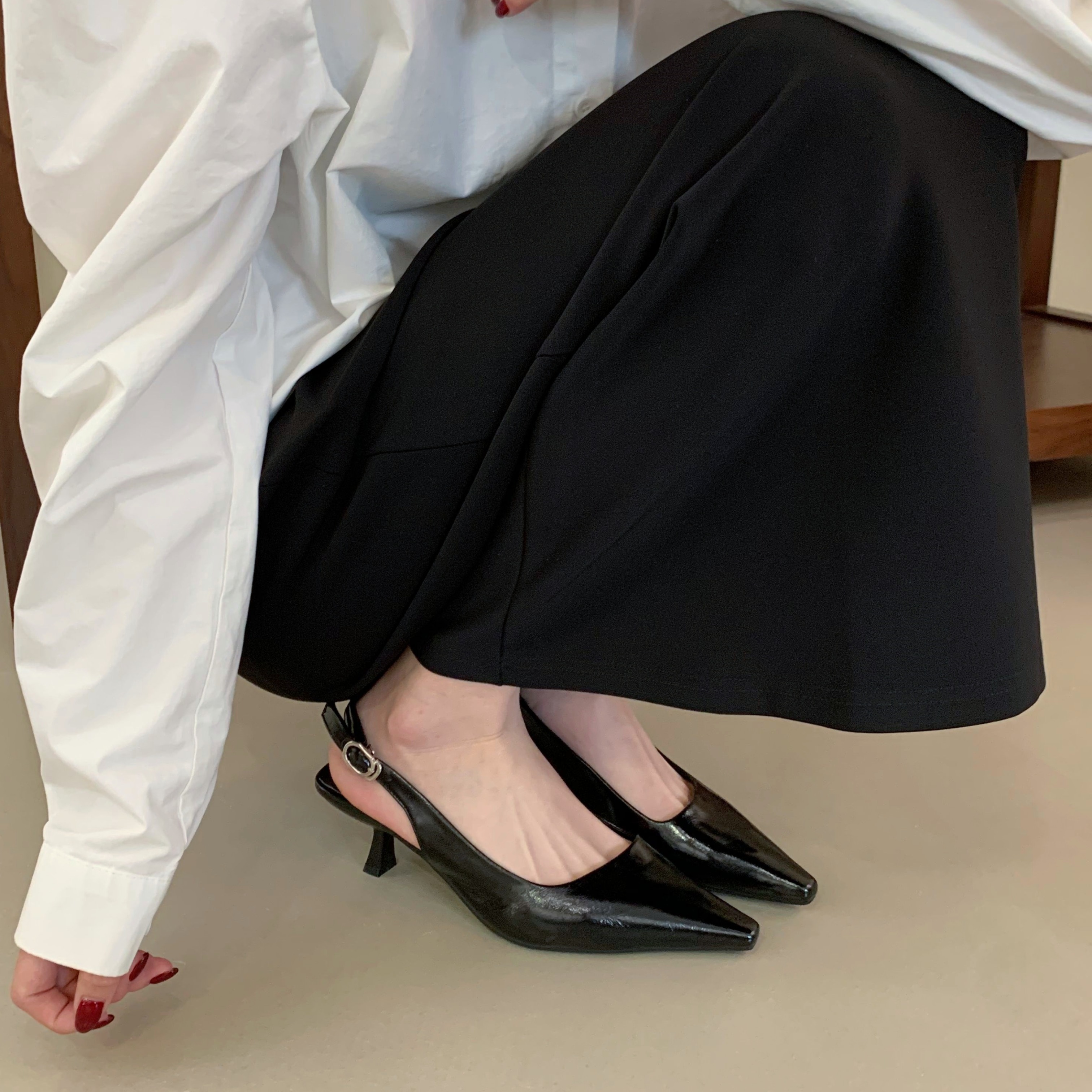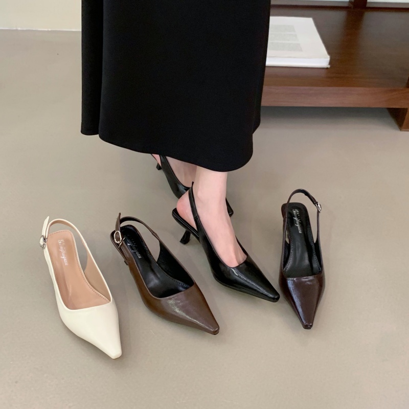 X-33014#法式浅口包头凉鞋女夏季新款百搭细跟尖头一字扣带气质高跟鞋 鞋子批发女鞋批发高跟鞋批发