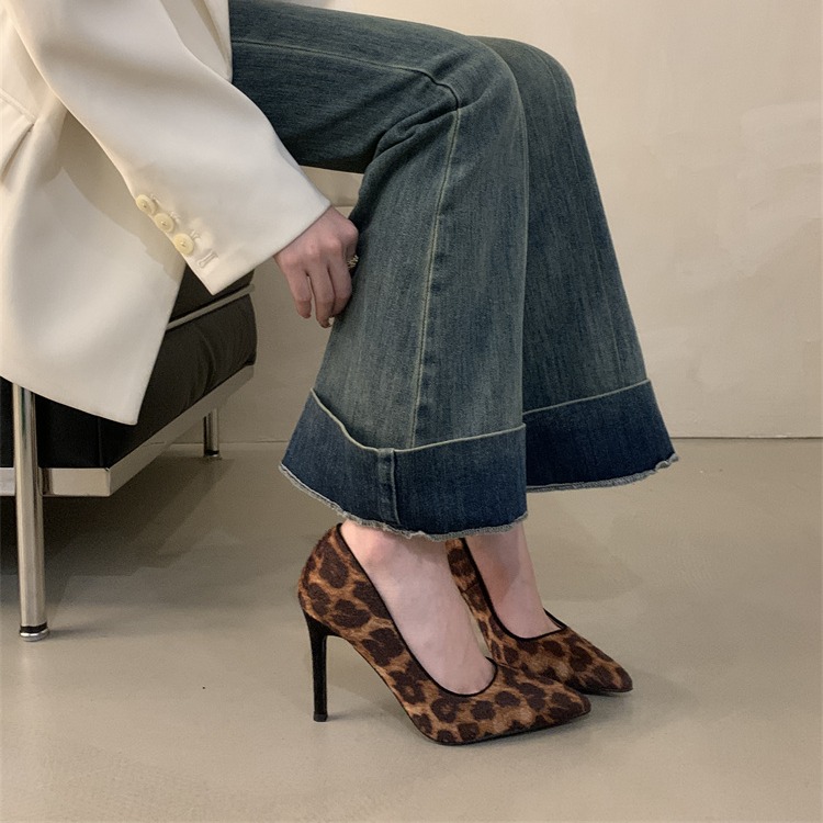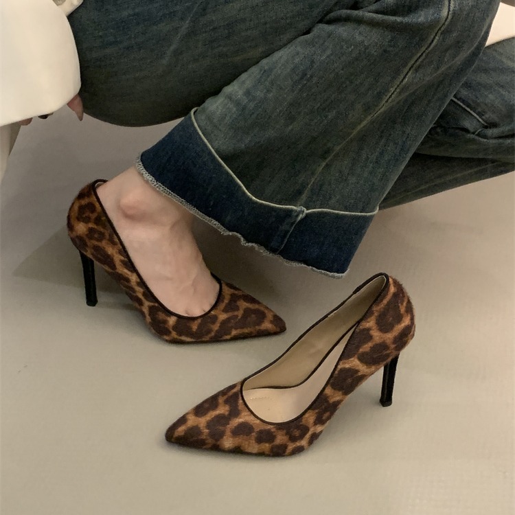 X-33018#早春新款欧美尖头浅口性感豹纹高跟鞋细跟气质高级感单鞋 鞋子批发女鞋批发高跟鞋批发