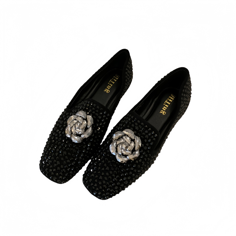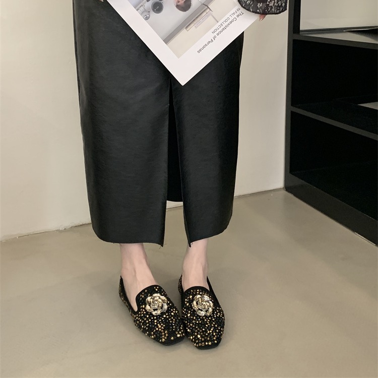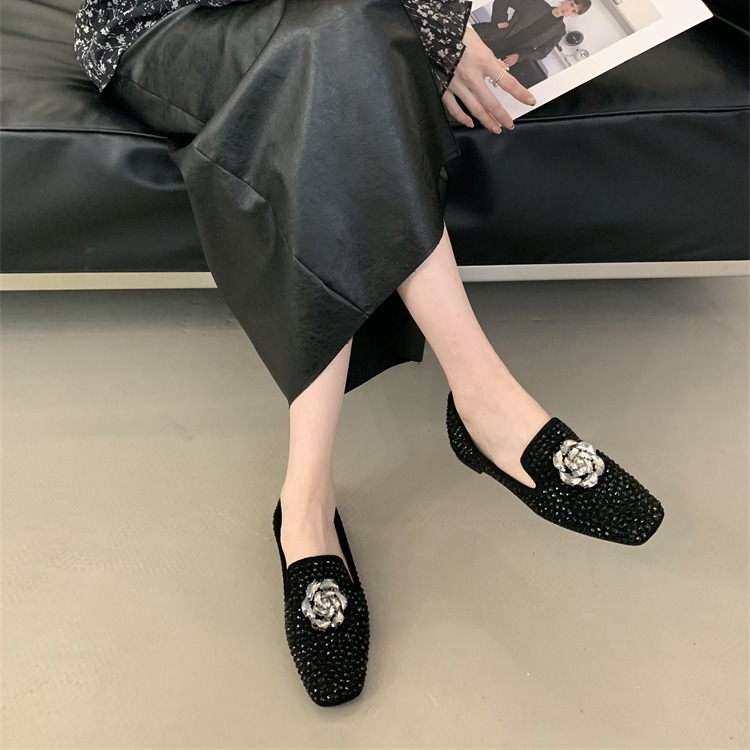 X-33022#英伦风水钻乐福单鞋女外穿春夏新款韩版一脚蹬浅口豆豆鞋 鞋子批发女鞋批发高跟鞋批发