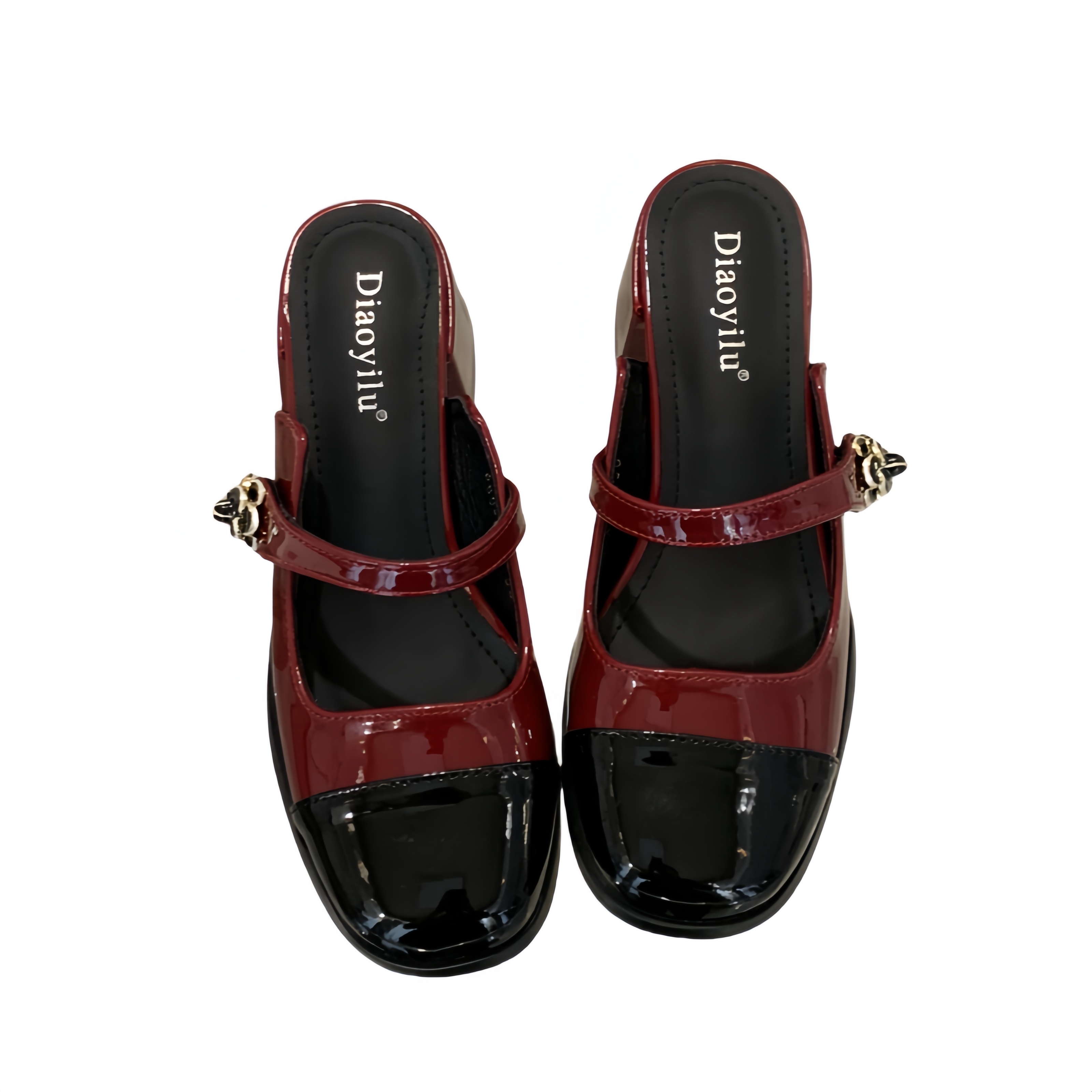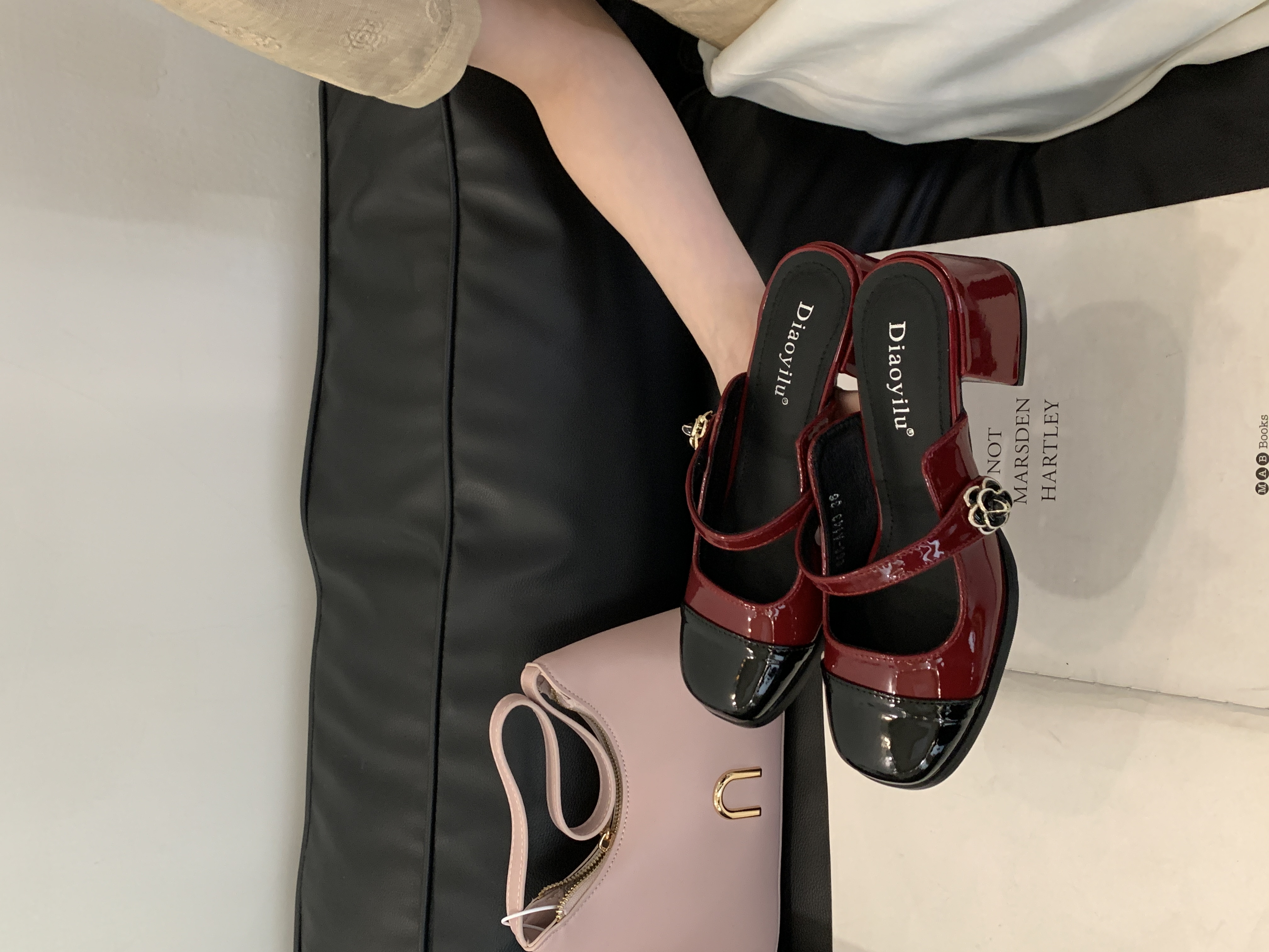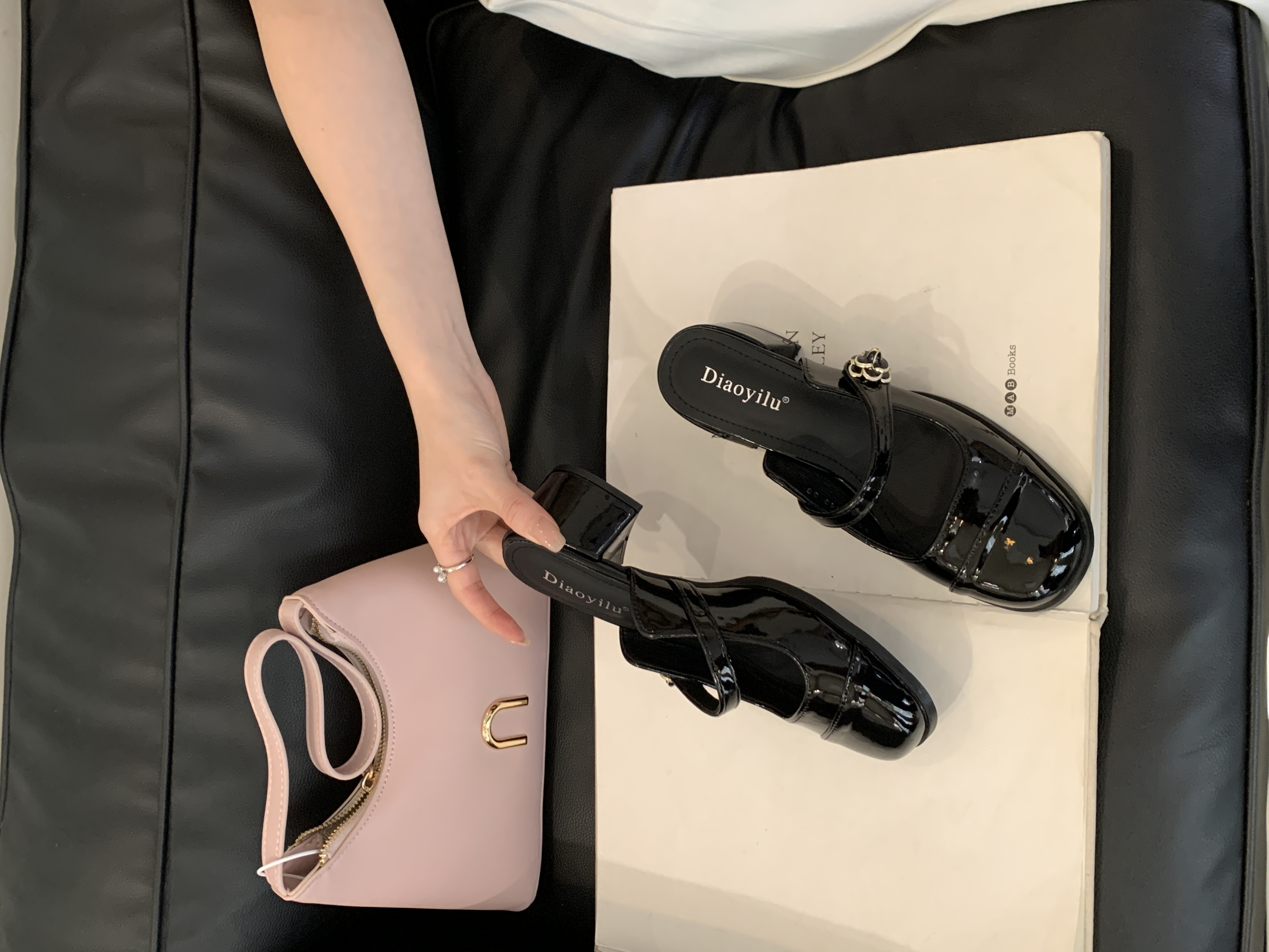 X-33040#粗跟包头半拖鞋女鞋新款夏外穿法式高跟凉鞋小香风玛丽珍单鞋 鞋子批发女鞋批发高跟鞋批发