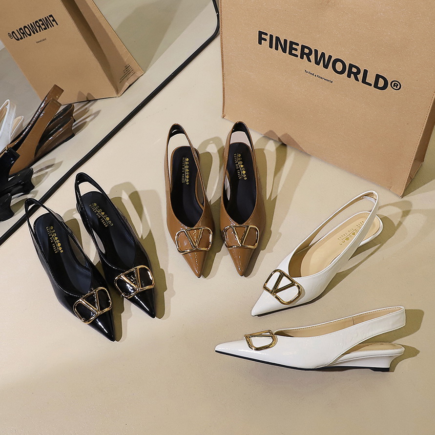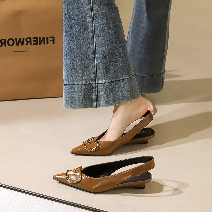 X-33052#欧美风时尚V扣低跟女鞋尖头浅口百搭坡跟后空后绊带单鞋 鞋子批发女鞋批发高跟鞋批发