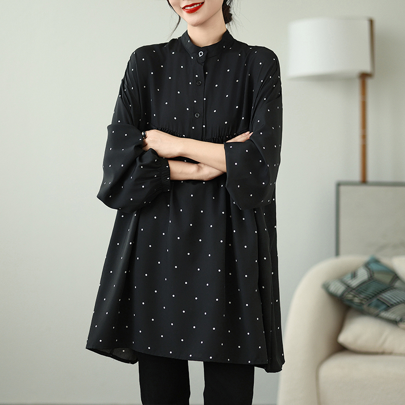 早春大码女装文艺波点宽松中长款百搭女衬衫 服裝批發女裝批發服飾貨源