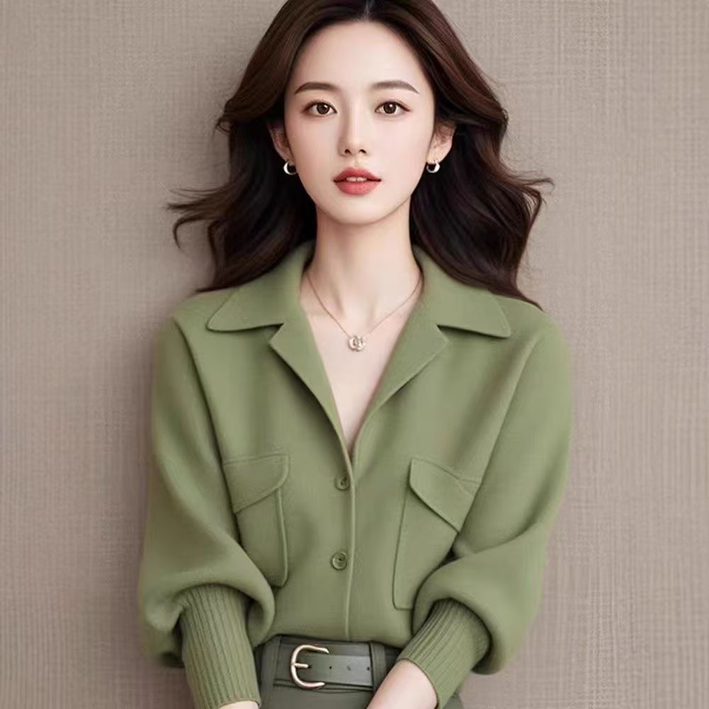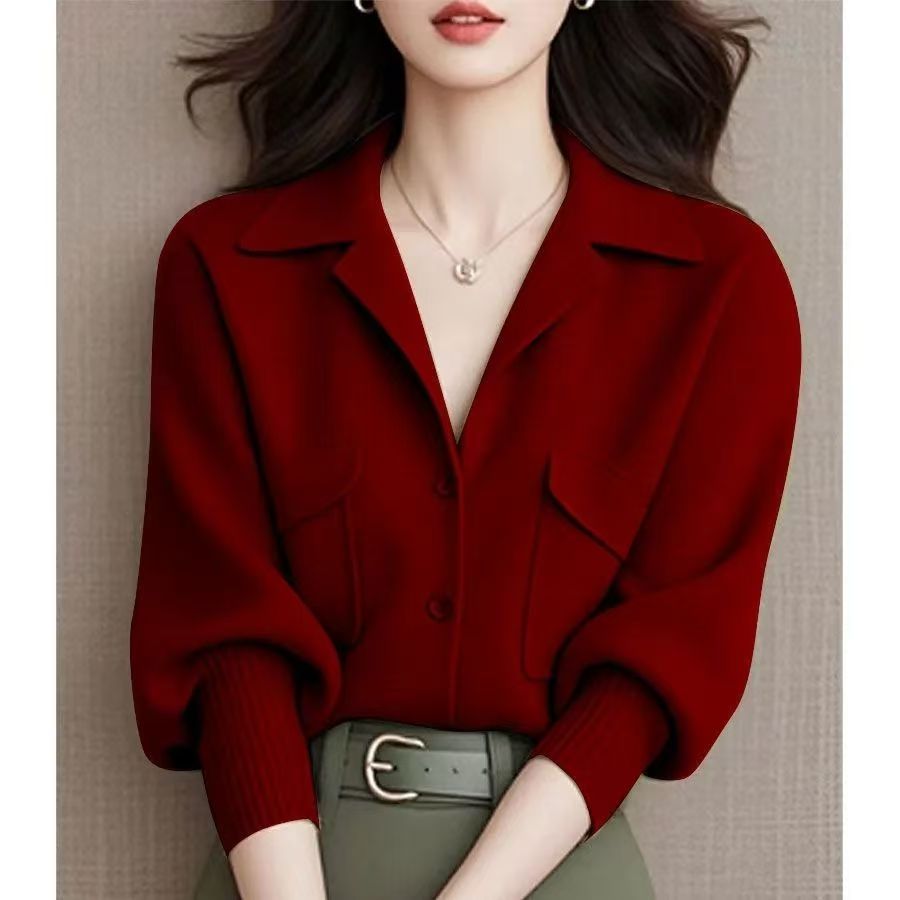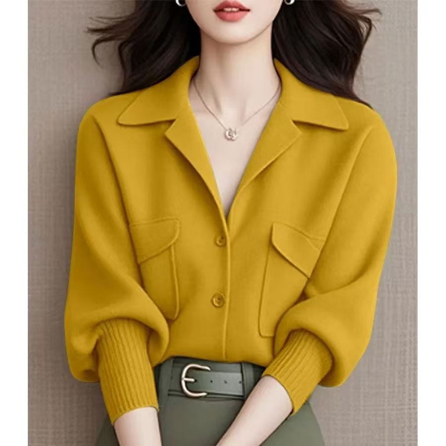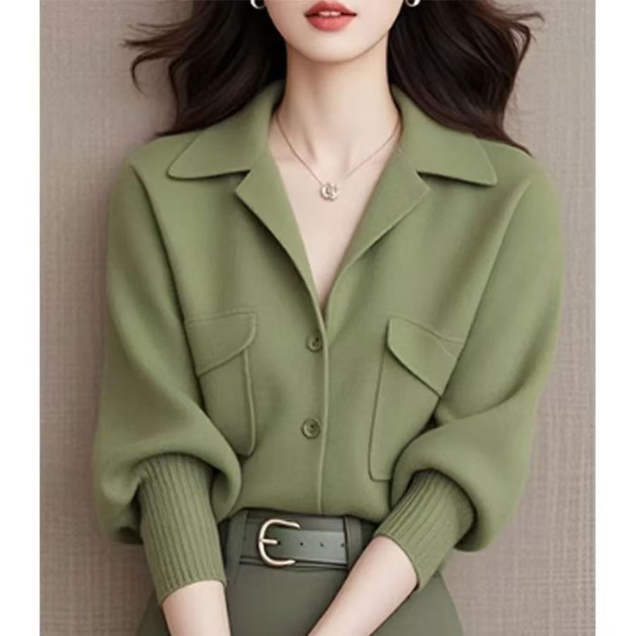 首页 > 毛衣、针织衫 > YF6987# (3色入内)冬装束袖西装领系扣双口袋宽松大码宽松显瘦针织上衣