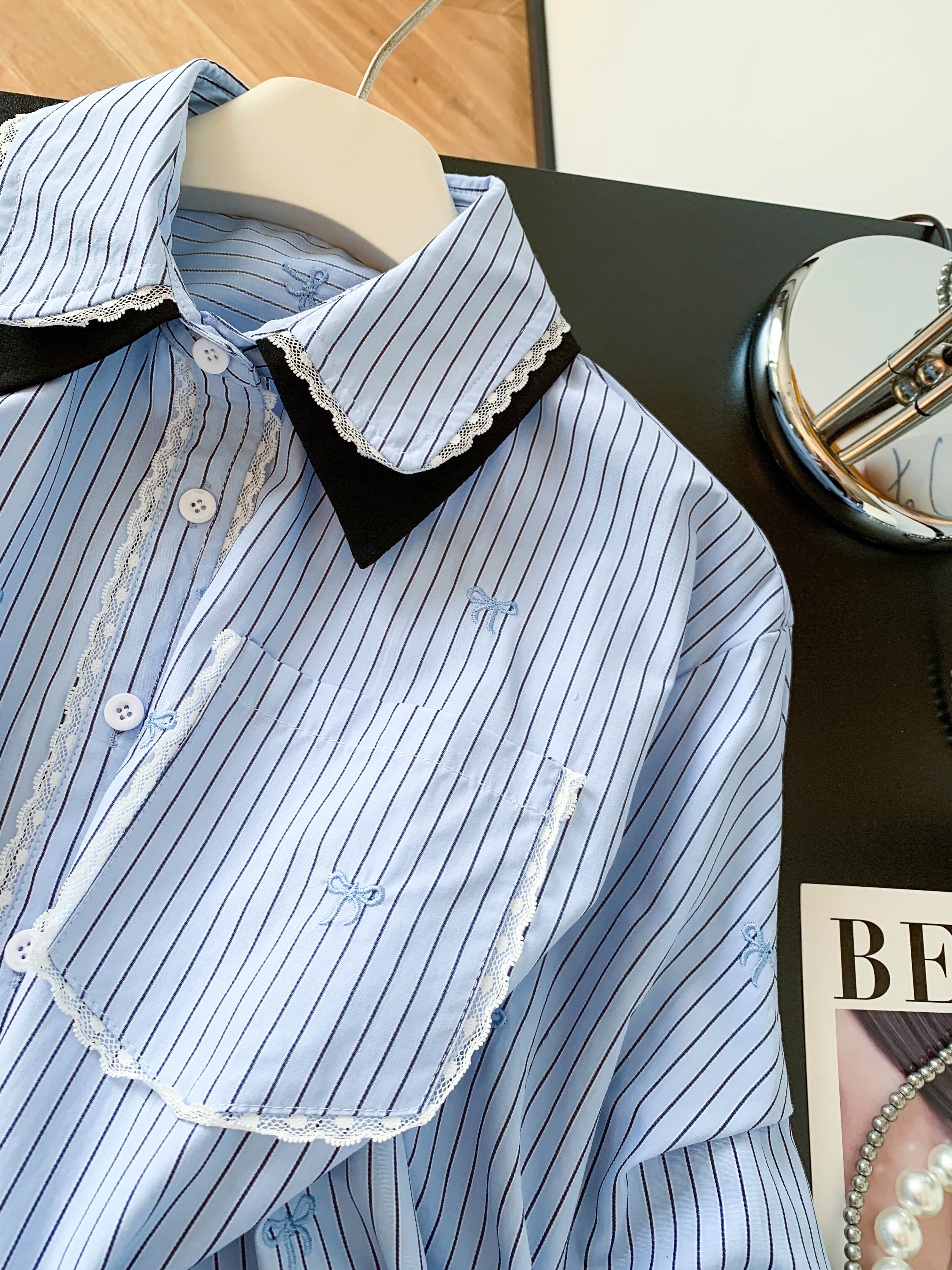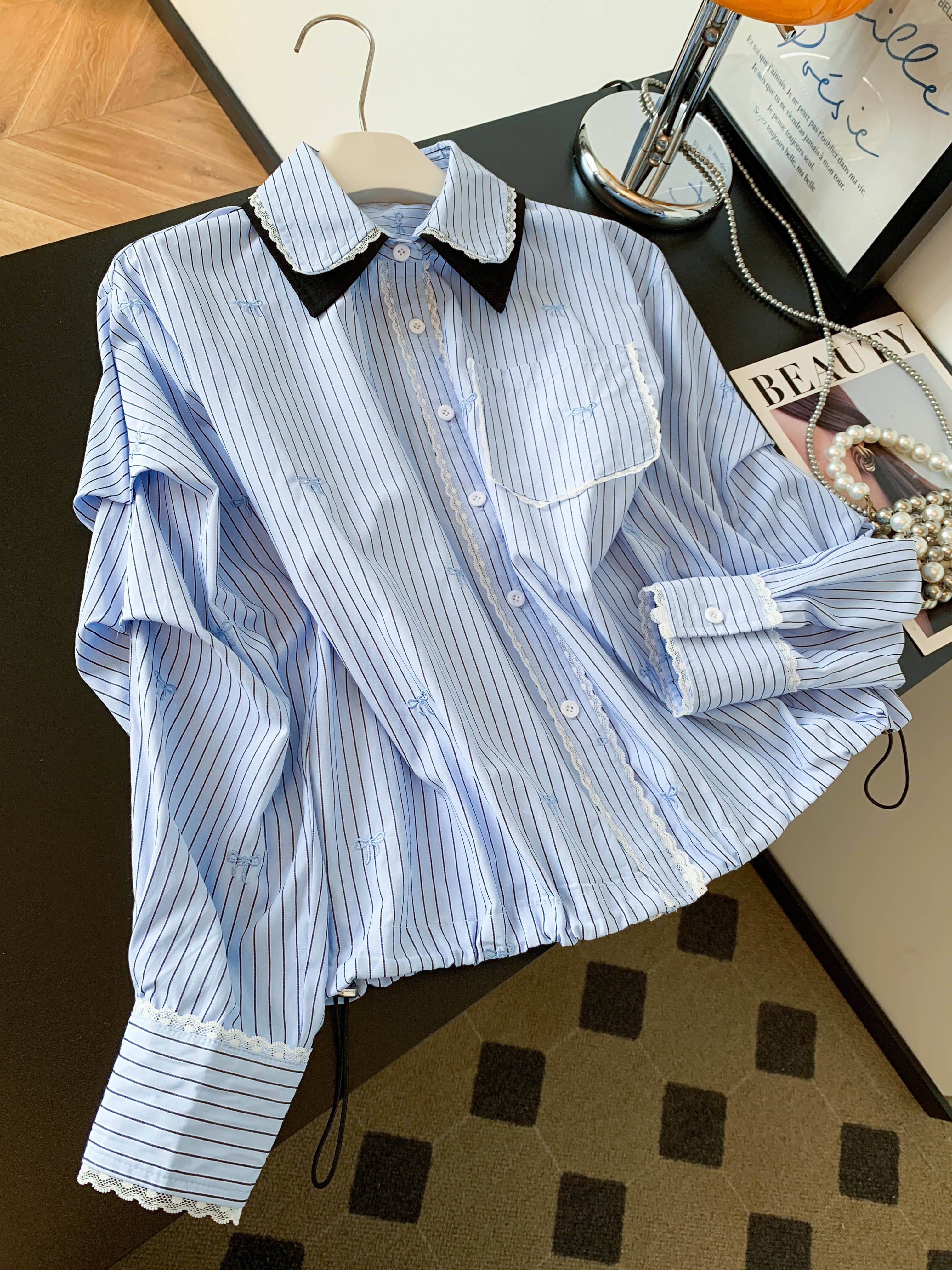 FA56433# 韩版蕾丝边刺绣蝴蝶结衬衫女早春巨洋气减龄的上衣 服裝批發女裝批發服飾貨源