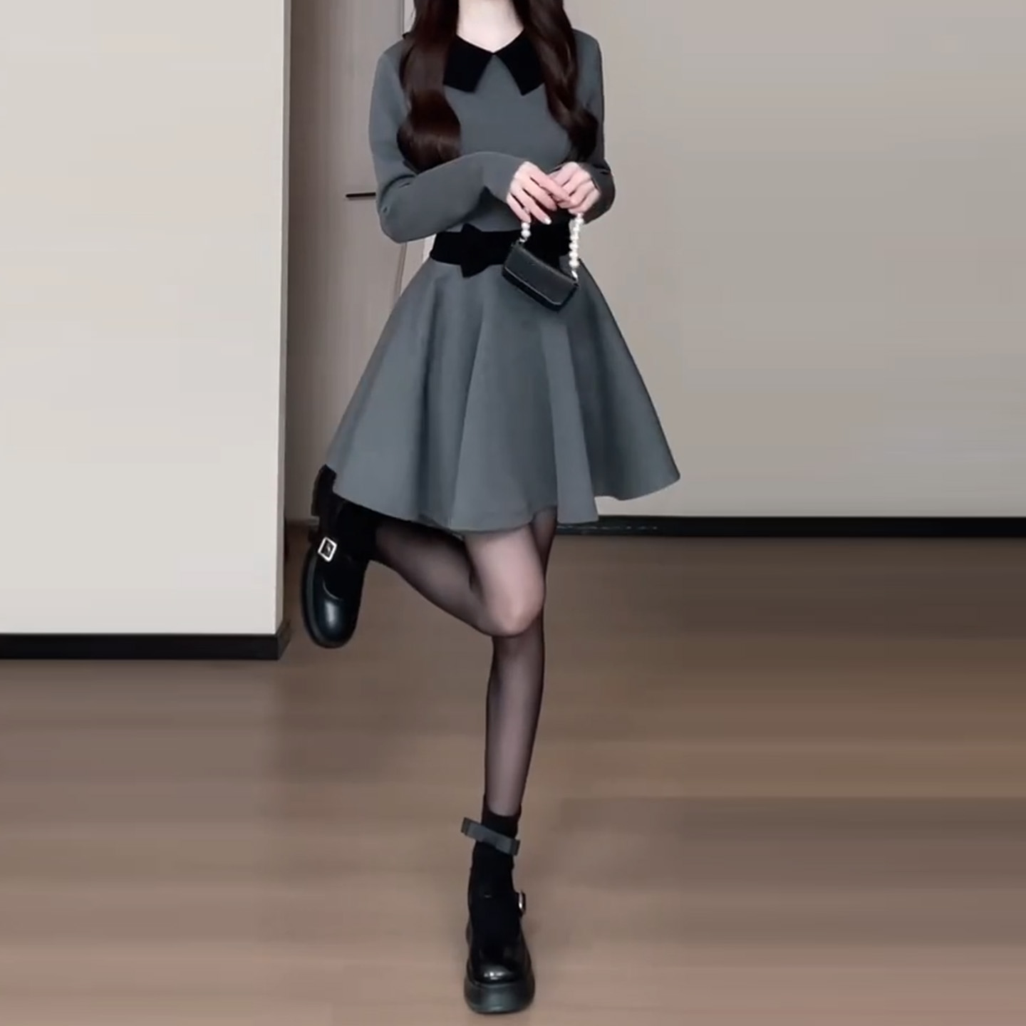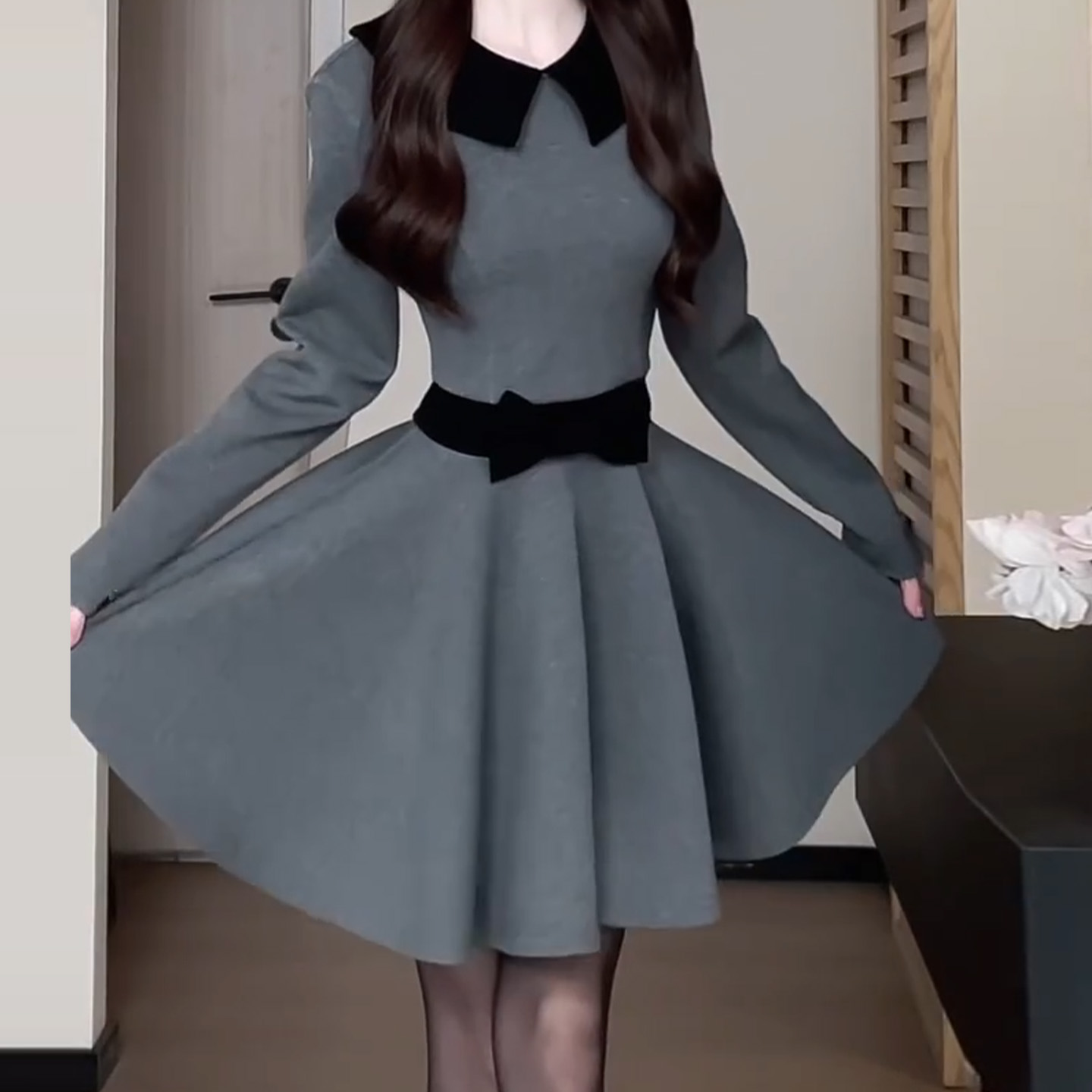 FA56445# 法式包臀纯欲风收腰长袖连衣裙秋冬新款心机显瘦小众短裙子 服裝批發女裝批發服飾貨源