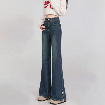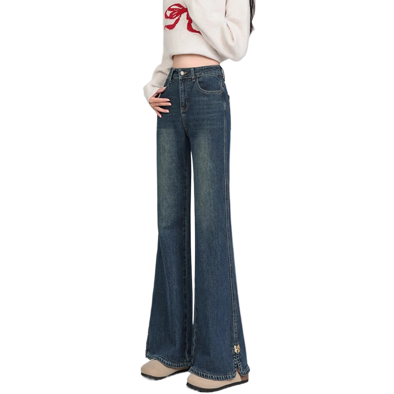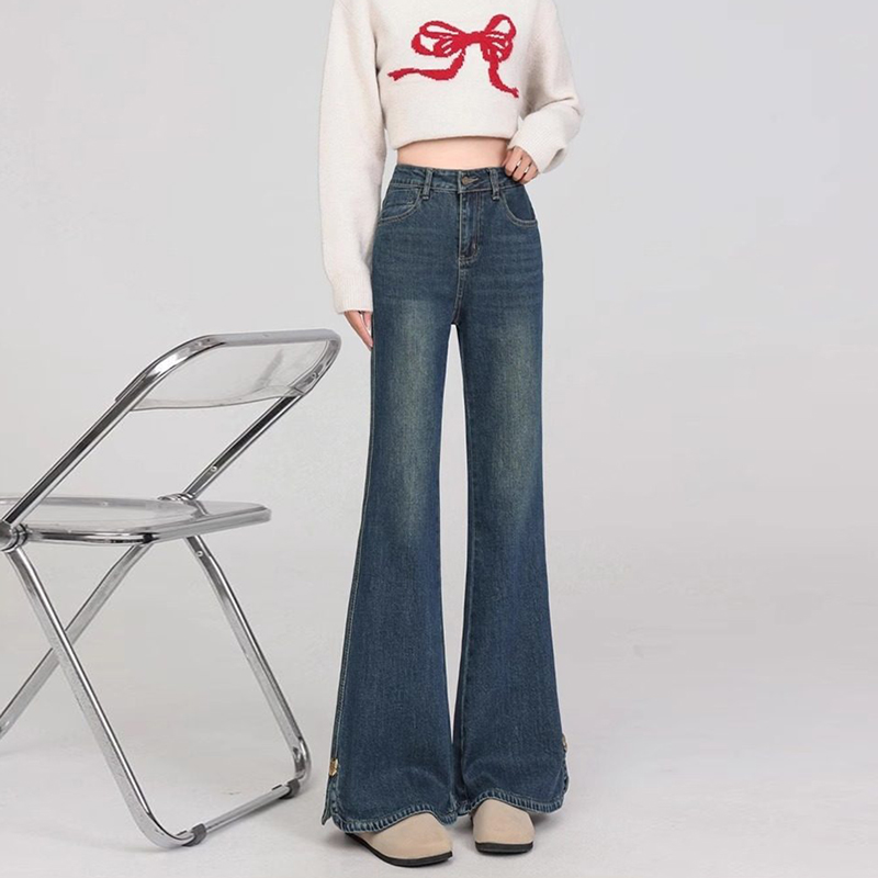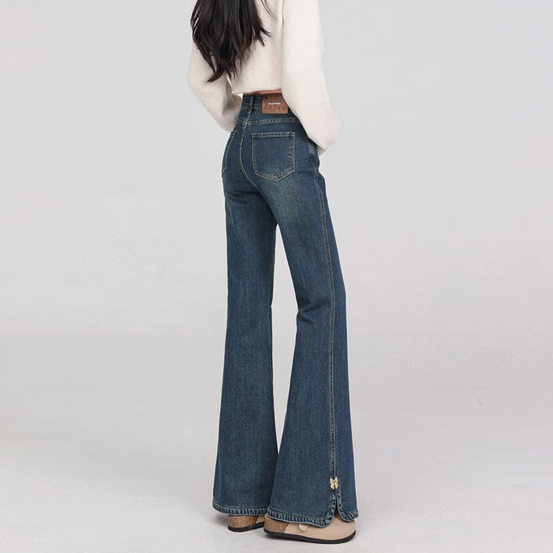 FA56503# 小个子开叉微喇牛仔裤女春季新款大码高腰胖mm显瘦修身喇叭裤 服裝批發女裝批發服飾貨源