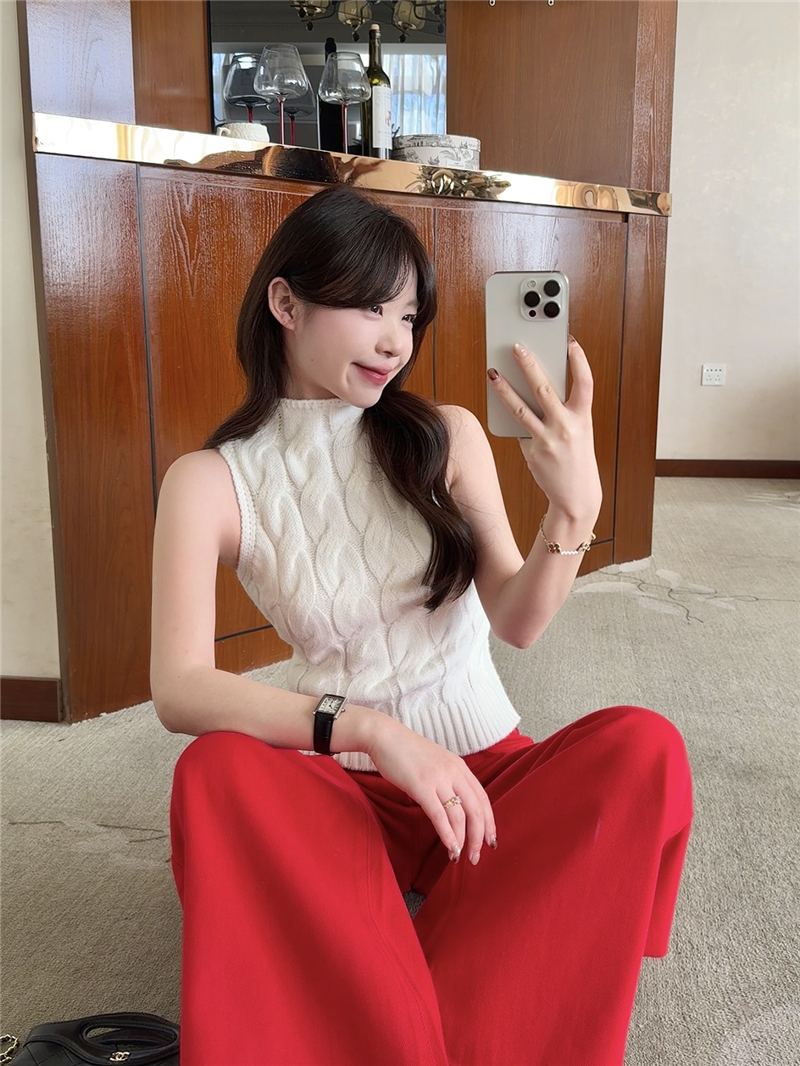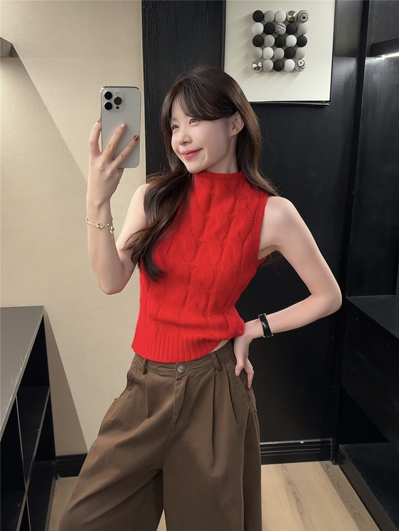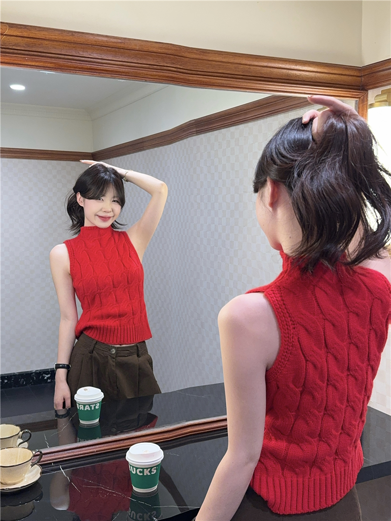 FA56544# 樱桃利口酒麻花针织套头背心新款春季显瘦打底上衣 服裝批發女裝批發服飾貨源
